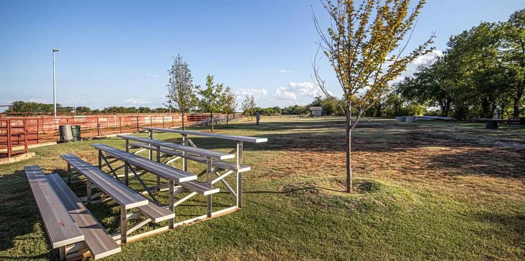 This impressive property is located in the highly sought after Yukon/Mustang area of Canadian County. The large outdoor arena, known as “Lienzo Charro Cuatro Ases”. It is fully equipped with water (well on property), outdoor lighting for evening use or events, and a 6 stall stable ready for equestrian enthusiasts. The entire property is fully fenced with custom steel gates located at both entrances, for convenient entry and exit. The southern portion of the property boasts mature trees, grazing pastures, and breathtaking views. With water already on-site, the land is well-suited for development, farming, or creating your dream ranch. Just minutes from schools, highways, and amenities, don't miss this unique opportunity!