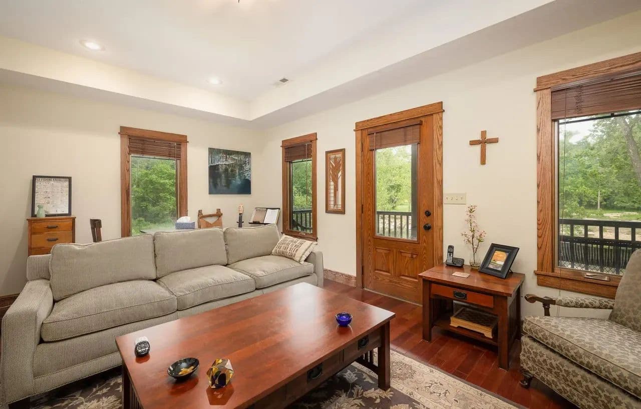 The Little Piney river never disappoints! Tight Lines Lodge is conveniently located just outside of Newburg, Missouri. Conveniently located in the middle of St. Louis and Springfield and roughly 3 hours from Kansas City. This 7 m/l acre property sits alongside the Piney with a meticulously pre-planned home. The property has been landscaped to prevent flooding with a large concrete retaining wall, the 1,100 sqft lodge has never flooded. Key features of the lodge are concrete hardboard siding, crosscut white pine trim and hard wood floors. The lodge has a great view of the river from the rear porch. World class fishing right in your back yard, just down river from white ribbon and blue ribbon trout areas where over 20 inch rainbow have been caught within site of the back porch. Great panfish and small mouth fishing during the warmer months as well. The house comes nearly fully furnished as well.