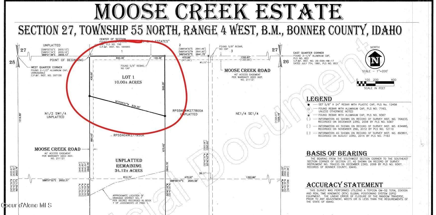 Come check out your future home location! End of road privacy, beautiful and quiet 10 acres. Treed with older and new growth, vegetation of all sorts, including wild raspberries all over. Open and flat. Wells in area are high producing. No CCRs or HOA. 20 some minutes to Priest River, Athol, or Spirit Lake. Private maintained road; the end of Moose Creek to property has not been used recently.