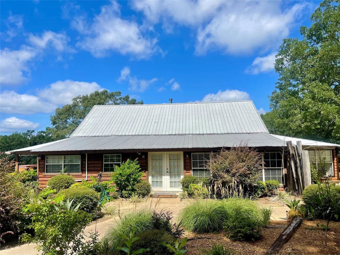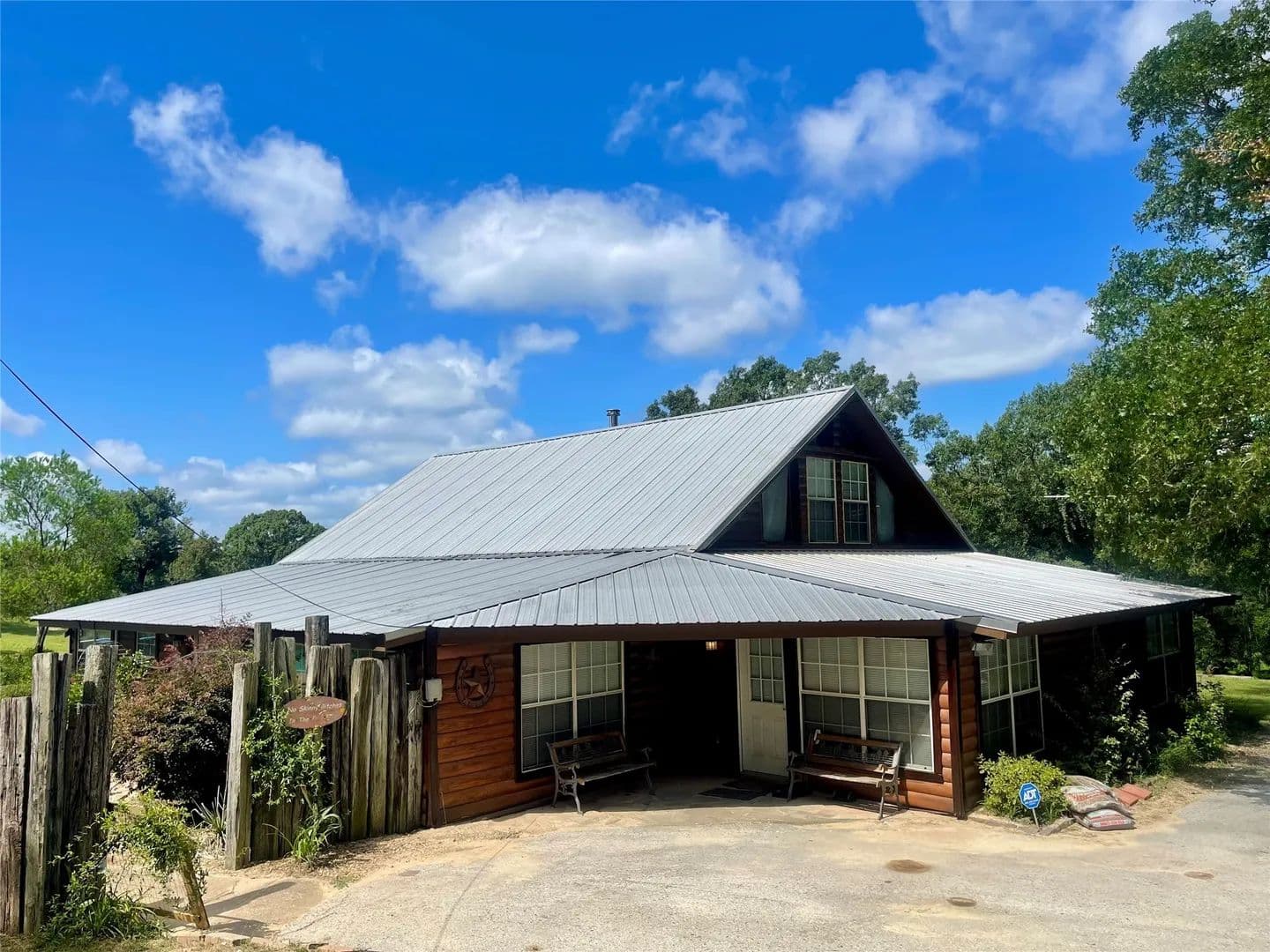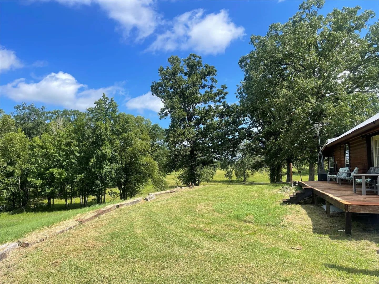 Nestled on a beautiful hillside overlooking the property, this spacious log home awaits your personal touch. The lush landscaping surrounding the covered patio/bar overlooks the pool/hot tub offering relaxation and room for entertaining family/friends. The landscape is home to several fruit/pecan trees, seasonal fruits, berries, various fresh herbs and a feeding ground to humming birds, butterflies, and honey bees. A lengthy back porch deck is a great place for sitting and enjoying sunrise/sunset. The lush pastures and surface water provide grazing for livestock and wildlife. Love the water, bring the boat as you are less than 10 minutes from beautiful Lake Palestine for fishing and watersports