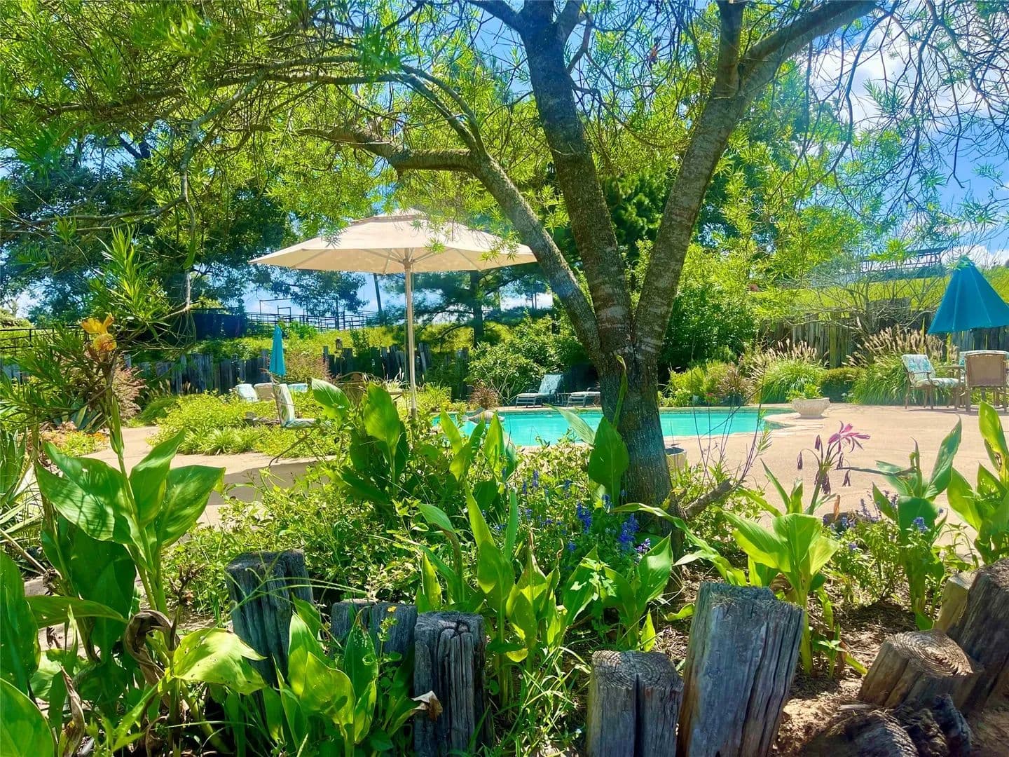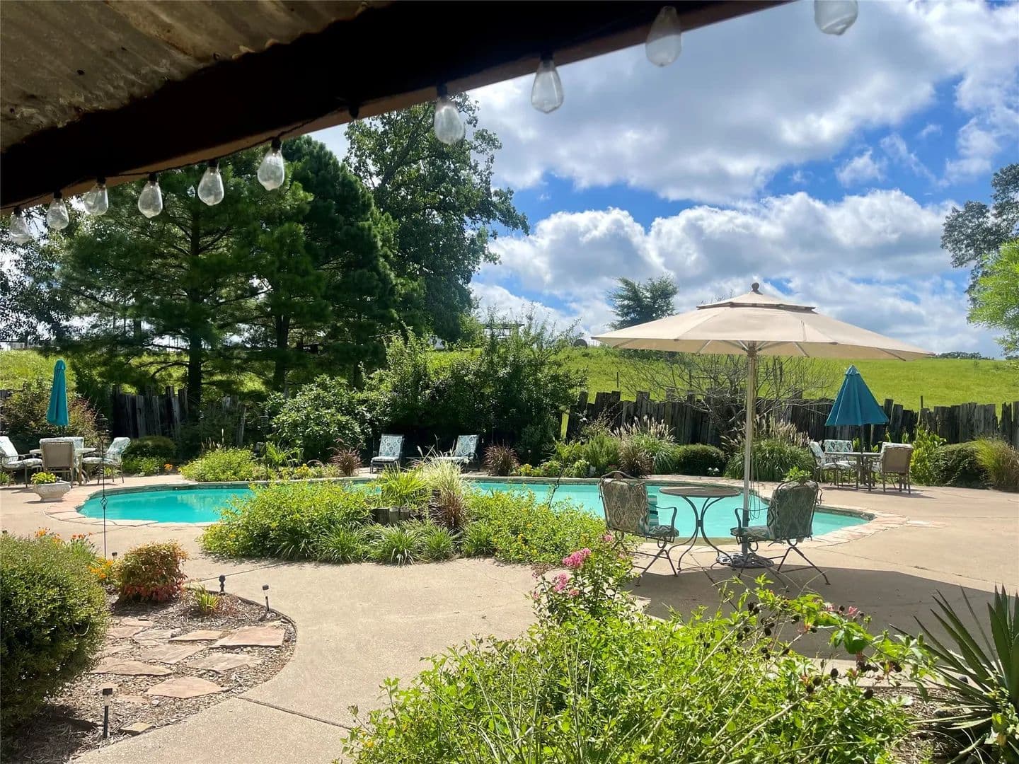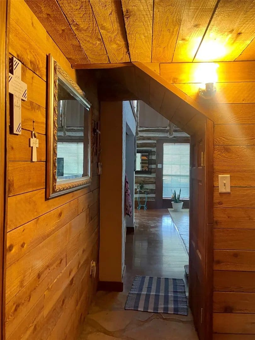 Nestled on a beautiful hillside overlooking the property, this spacious log home awaits your personal touch. The lush landscaping surrounding the covered patio/bar overlooks the pool/hot tub offering relaxation and room for entertaining family/friends. The landscape is home to several fruit/pecan trees, seasonal fruits, berries, various fresh herbs and a feeding ground to humming birds, butterflies, and honey bees. A lengthy back porch deck is a great place for sitting and enjoying sunrise/sunset. The lush pastures and surface water provide grazing for livestock and wildlife. Love the water, bring the boat as you are less than 10 minutes from beautiful Lake Palestine for fishing and watersports