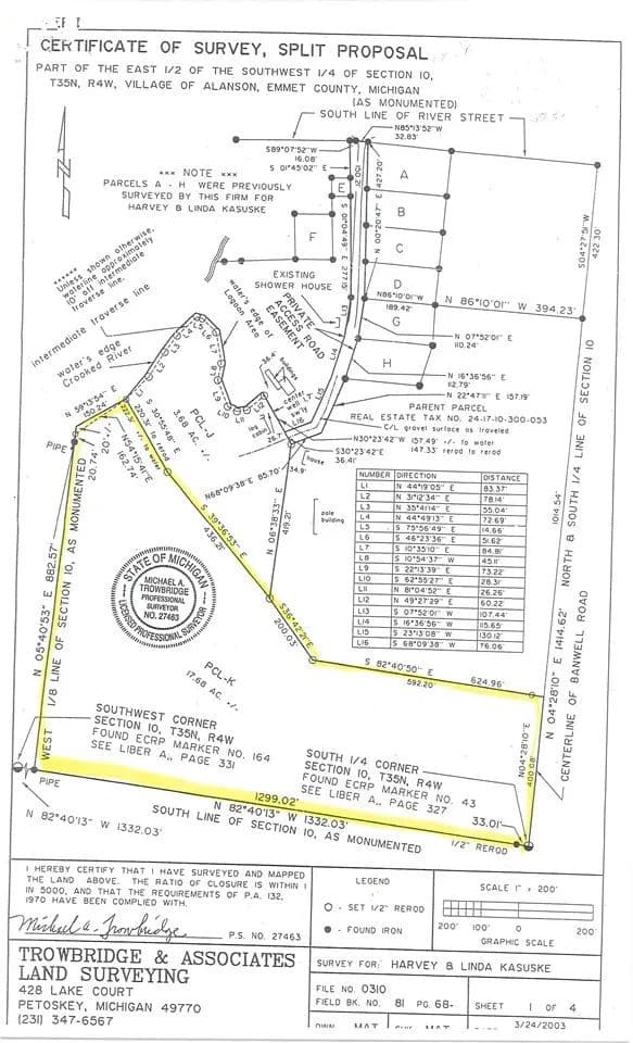 Crooked River waterfront with appox 17.68 acres for sale! This property with 150' of riverfront, is located within the Village of Alanson and is the perfect location to call home. Located walking distance to downtown or just a short drive to Petoskey or Harbor Springs. Jump on your boat and go exploring on the 40+ mile Inland Waterway system which connects to multiple other lakes and river systems. For the winter enthusiasts the snow mobile trail is at the road! Access the property from Banwell Rd. Sewer hookup is available. This property is zone PUD- (Planned Unit Development) that would allow many different opportunities for you to build. Adjacent to state land. This property has been surveyed and is currently in the process of being split. Has all split approvals. Call today to schedule a time to view this riverfront property.