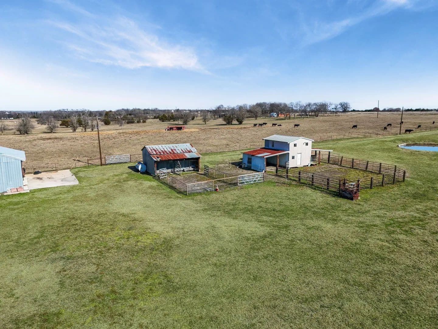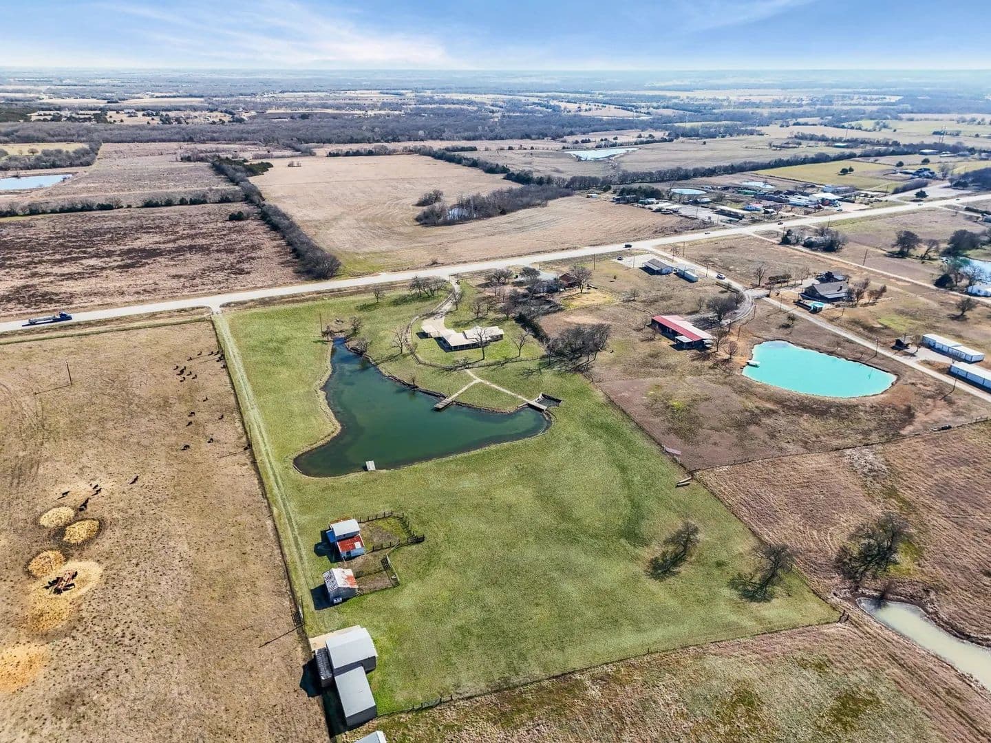 Don't miss this opportunity to purchase this amazing property with so much potential. This home sits on over 9 acres of cleared rolling topography. This home has the opportunity to be an amazing compound for a family who just wants to get away from it all. This property features a large approximately 2 acre lake that is fully stocked and has two fishing piers to enjoy anytime of the year. The property features two seperate entrances, a shop, a lean to for live stock or horses and another large shop all with electricity and water access and or connected. This property sits in the ETJ which means no city taxes and no HOA. This home needs some updates inside but is build on a firm slab foundation, with views that are unmatched.