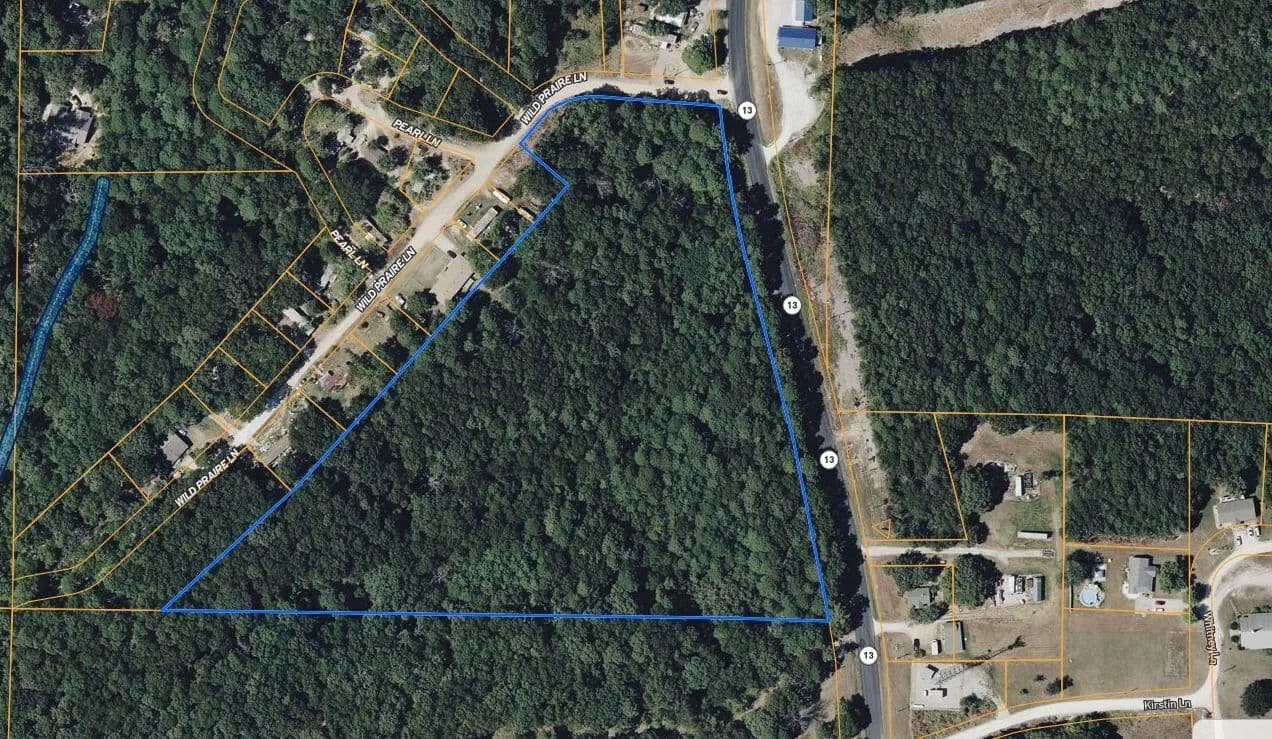 Prime Development & Investment Opportunity - Hwy 13 FrontageExceptional road frontage along Hwy 13 spans the entire south side of this property, offering outstanding access and visibility. The southern portion features a relatively level area ideal for building your dream home with minimal clearing of trees and brush. The land gently slopes into a scenic ravine running east to west through the center, then rises again toward the north end--providing natural character, privacy, and elevation changes perfect for creative design.Currently zoned Agricultural, this property offers valuable tax savings while you plan your custom build or future development. Already surveyed into Lots 1-11, it presents exciting subdivision or phased development potential. With prime highway frontage, there's also the opportunity to explore rezoning part of the property for commercial use, maximizing visibility and investment potential. Utilities:Water and electric are available along the road on the south boundary.Property Highlights:Direct access from Hwy 13 and Wild Prairie LnMature trees offering privacy and natural beautyFlexible development optionsStrong investment potentialOptional third-party boat slip available for additional costConveniently located near shopping, gas, and essential services, and just minutes from Kimberling City Marina, restaurants, and lake recreation, this property combines accessibility with privacy and opportunity.Whether you're looking to build, develop, or invest, this versatile property offers endless possibilities to bring your vision to life.
