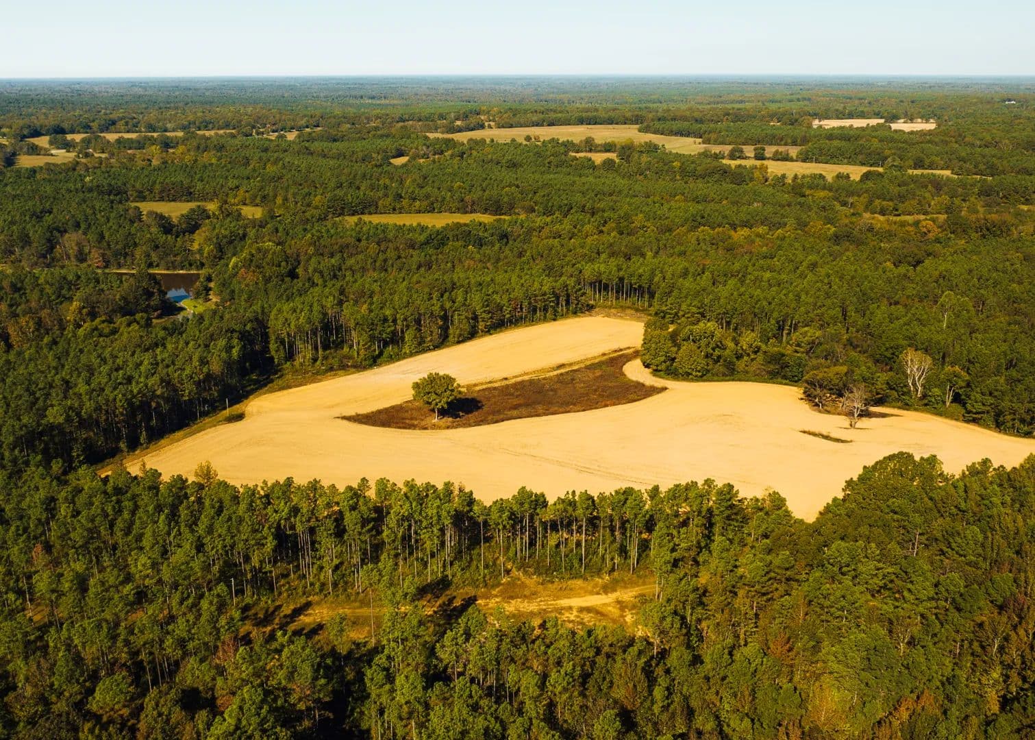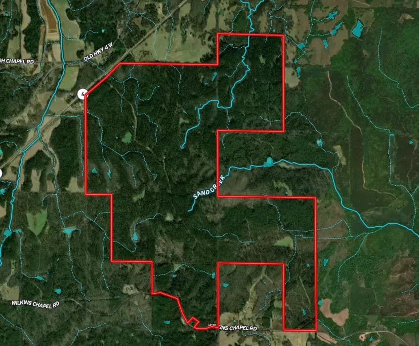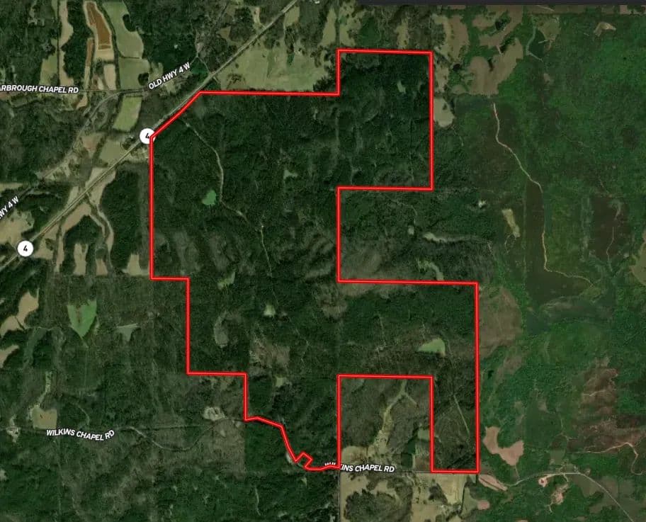 The 1,584.4± acre property features three gated entrances, one on the south side of Highway 4, and two along Wilkins Chapel Road to the north, allowing access from multiple directions and minimizing hunting pressure. The Highway 4 entrance has a long gravel drive leading to a newer two-door shop with an attached shed, metal carport, and enclosed storage room—perfect for housing buggies, tractors, and all your land maintenance equipment.