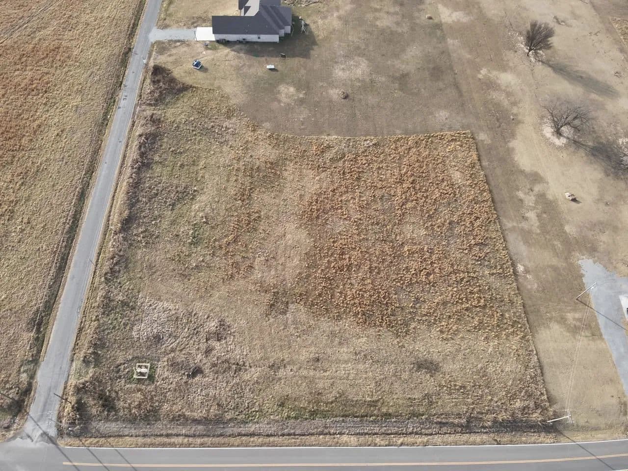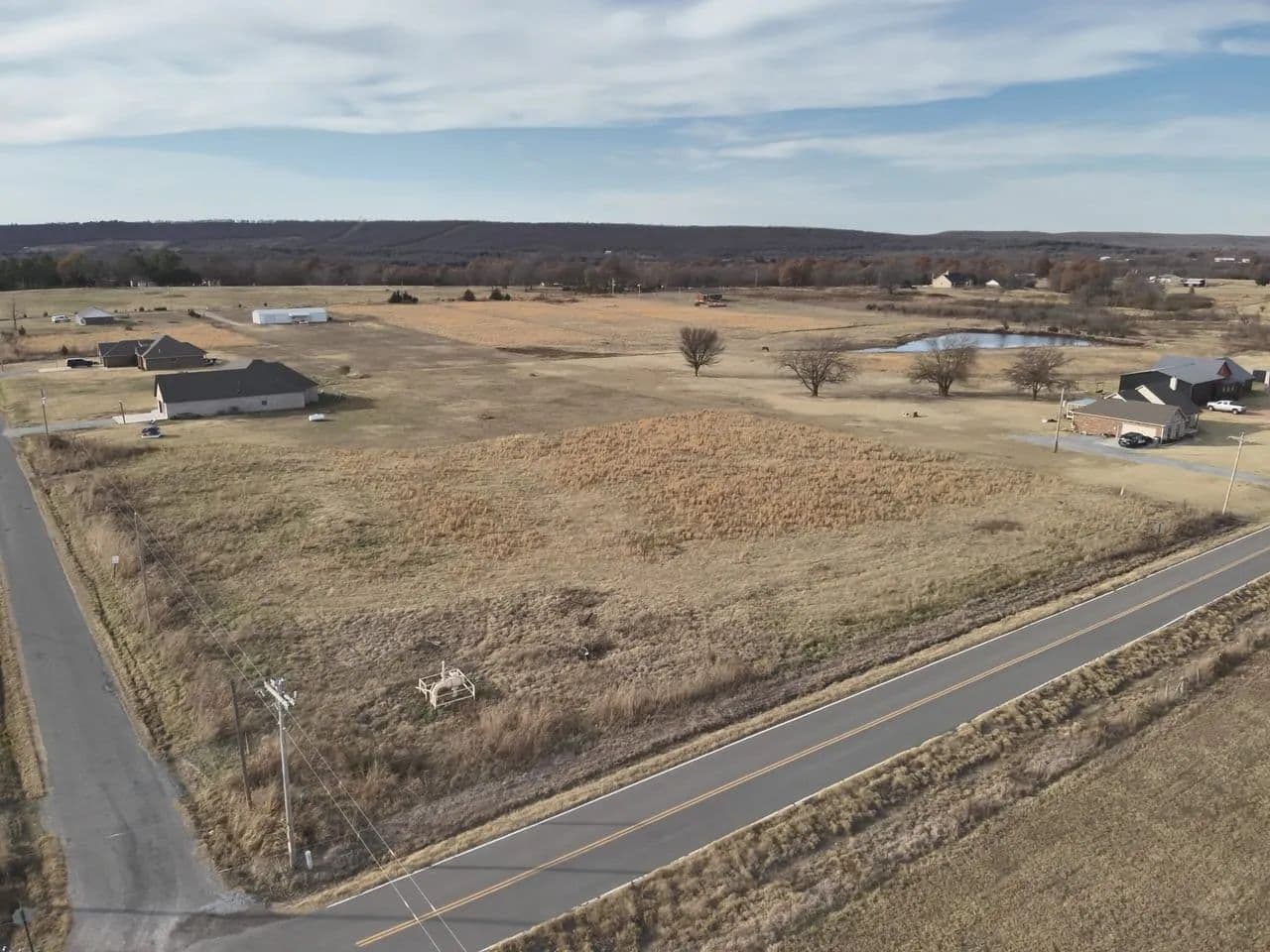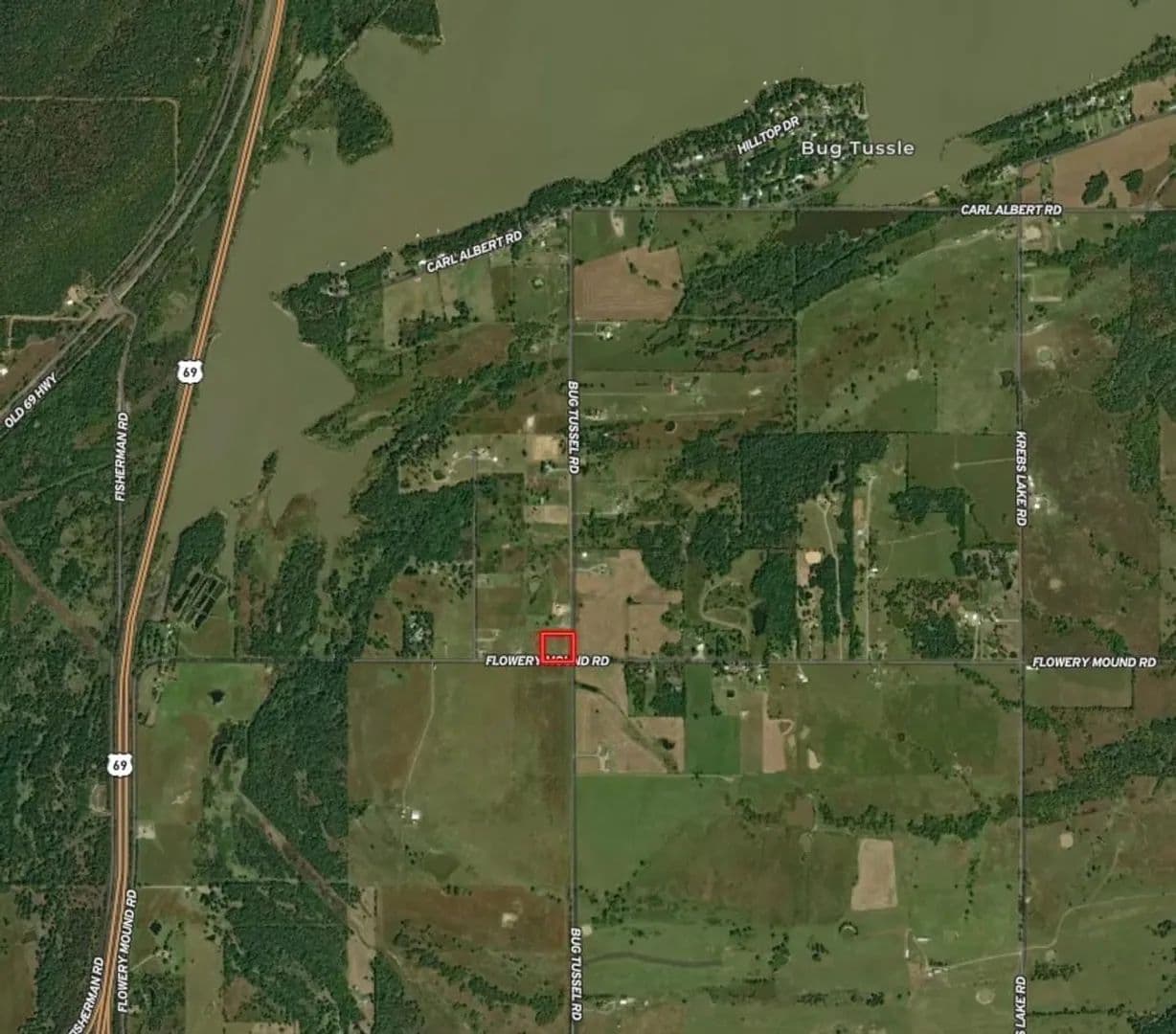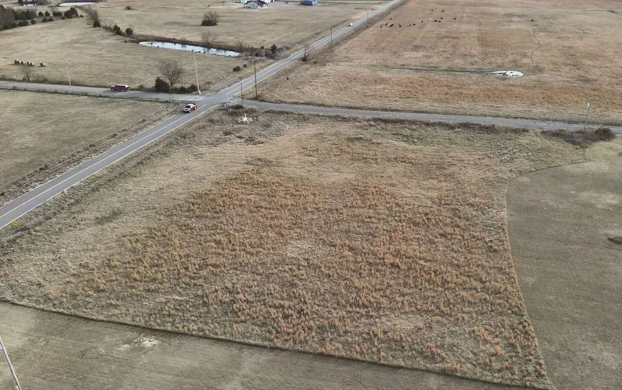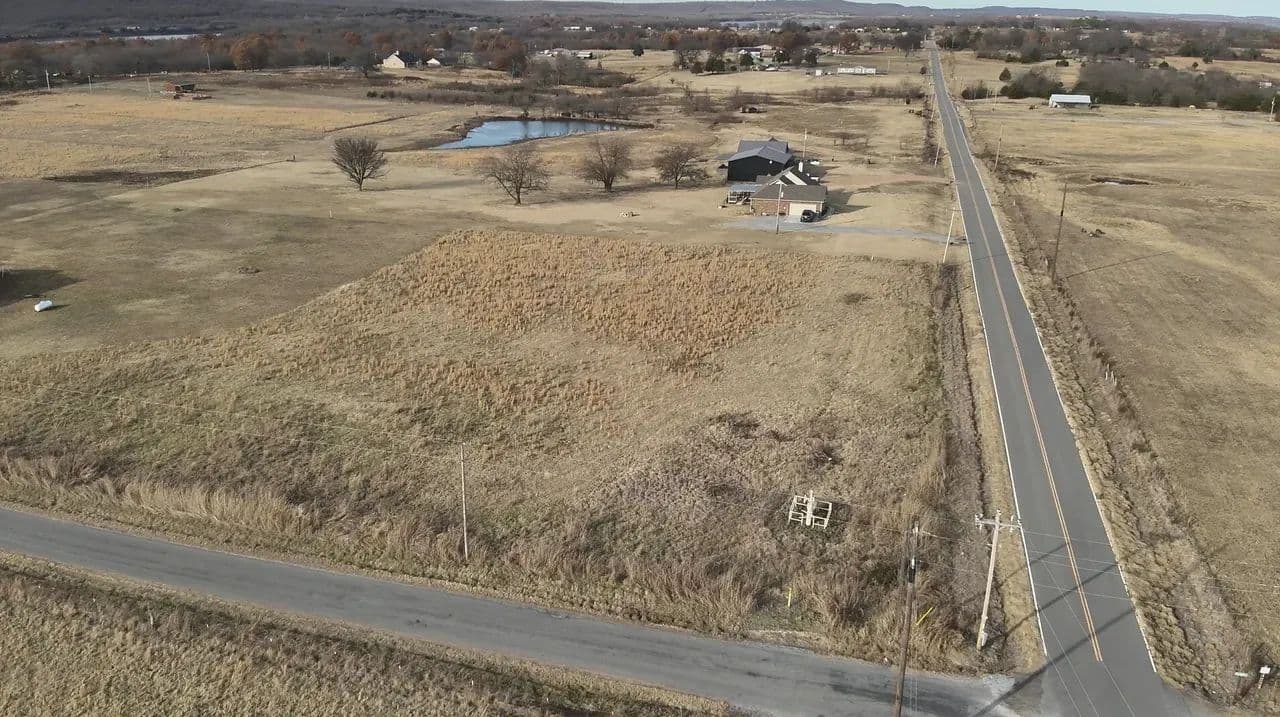 Located outside of city limits with convenient access to Highway 69, the tract sits on the corner of Bugtussel Road and Flowery Mound Road. It features over 600 feet of paved road frontage between both sides, providing excellent access, strong visibility, and flexible building options.