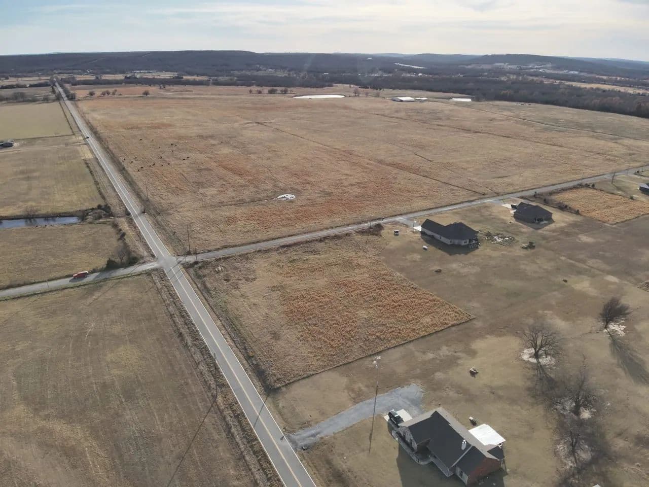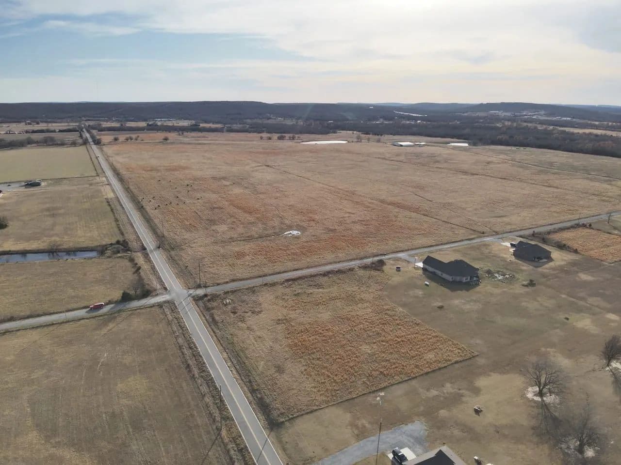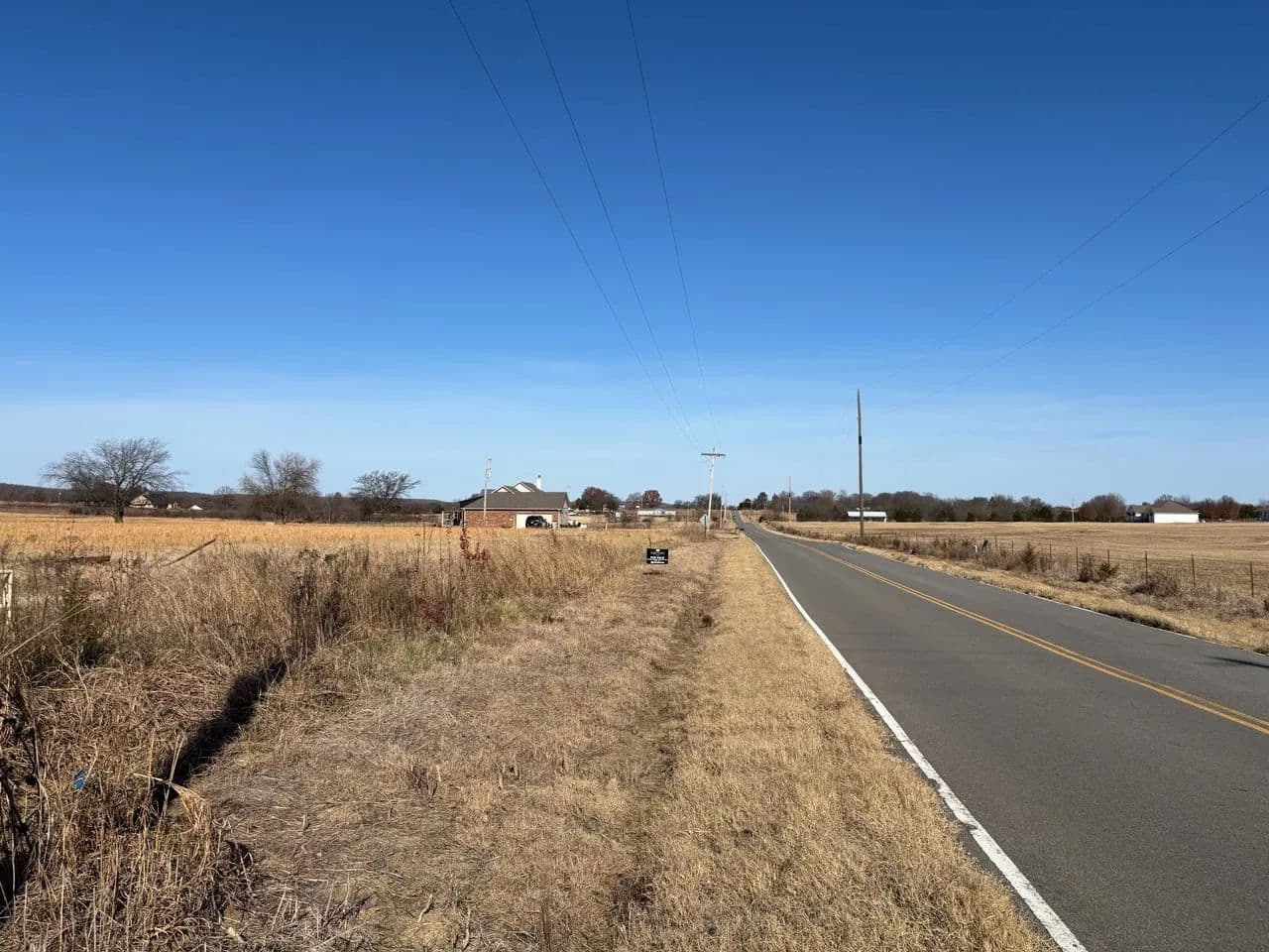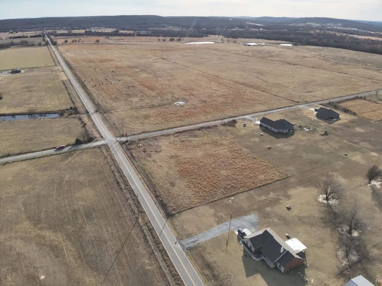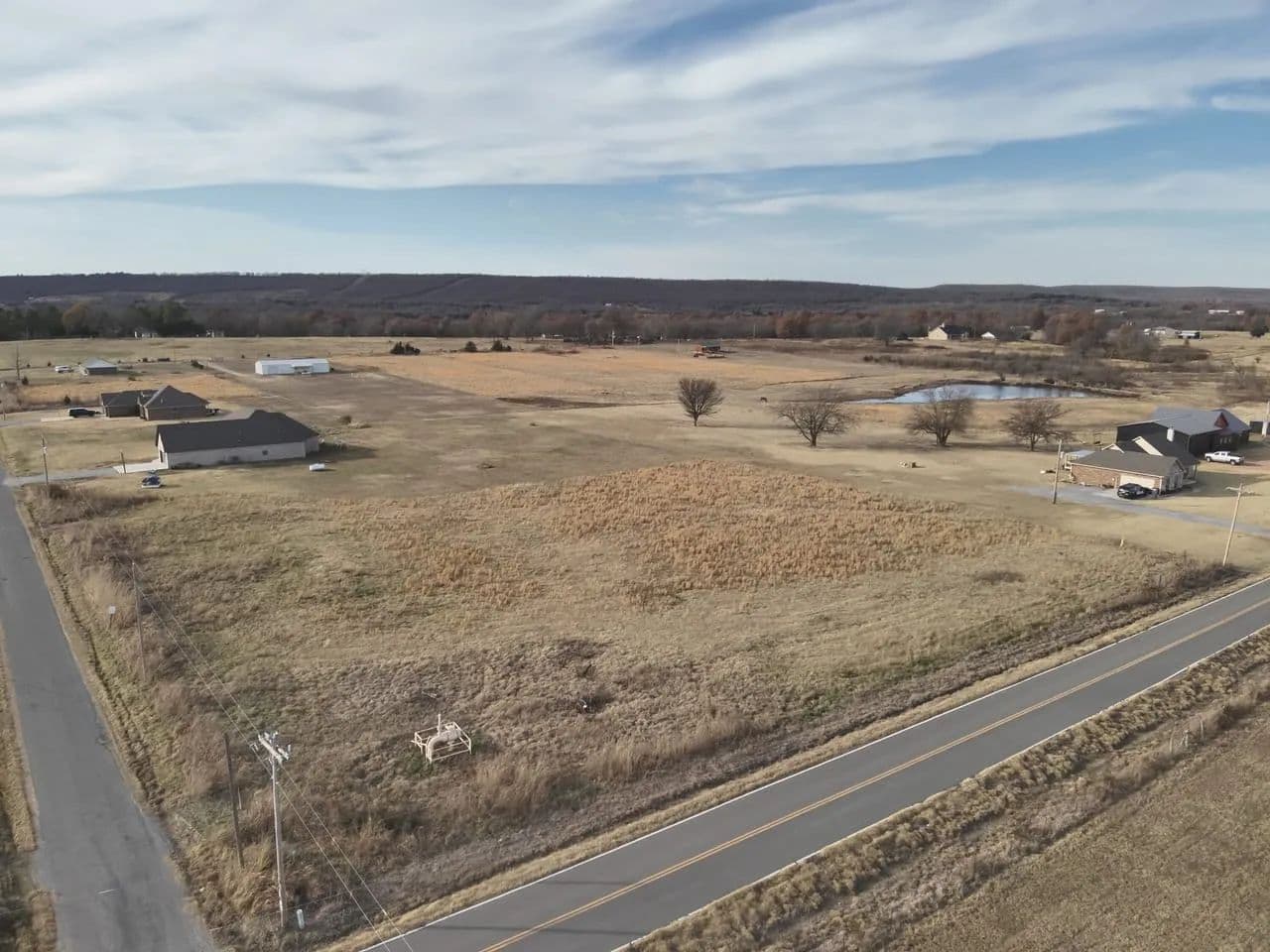 Located outside of city limits with convenient access to Highway 69, the tract sits on the corner of Bugtussel Road and Flowery Mound Road. It features over 600 feet of paved road frontage between both sides, providing excellent access, strong visibility, and flexible building options.