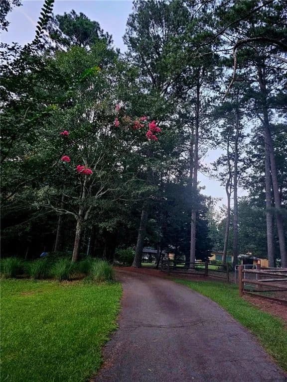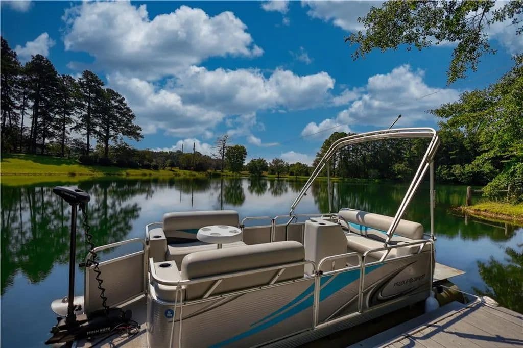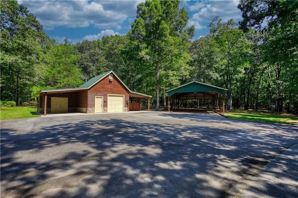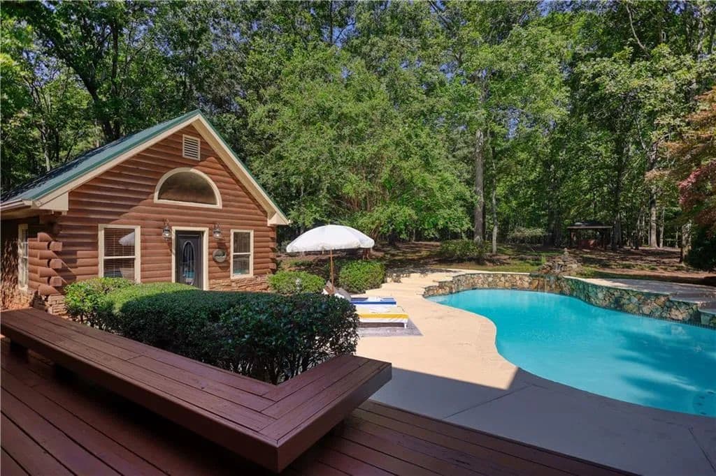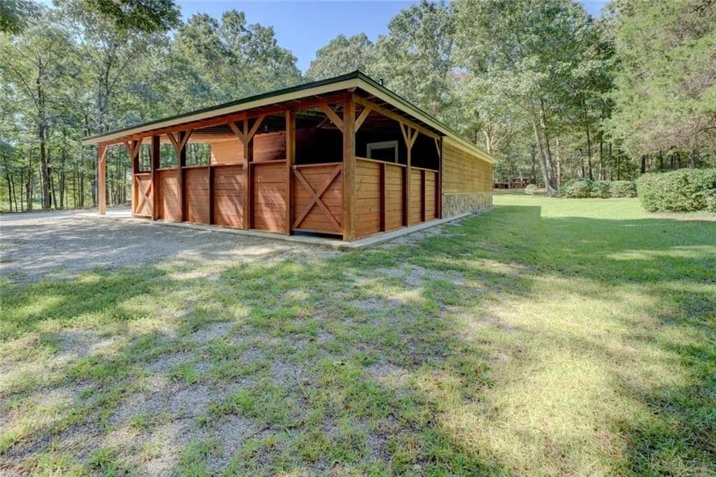 Welcome to your dream escape, a stunning Craftsman log house nestled on an expansive almost 7-acre oasis that perfectly marries rustic charm with modern luxury. This remarkable property offers an unparalleled lifestyle surrounded by nature, privacy, and endless recreational opportunities. Drive through the gated entrance, and you are greeted by a fully-fenced paddock on the right and a breathtaking view of the lake and manicured lawns on the left. Follow the driveway lined with fuchsia and white crepe myrtle trees, cross over the picturesque bridge, and up the hill to arrive at the main dwelling with a gorgeous trellis meeting you by the attached wood paneled garage. This captivating home is enveloped by lush woods, and is fully fenced in providing an unparalleled sense of privacy and tranquility. Step out front to your fully-stocked lake (shared with only one neighbor), ideal for leisurely afternoons. The boat dock beckons you to launch your mini electric pontoon boat which conveys with the house. The lake is the perfect backdrop for your tranquil lifestyle. Relax and unwind in your inground saltwater pool, complete with cascading waterfall. The back deck, with its built-in benches and dedicated dining alcove complete with a gas grill, makes for the perfect setting to host summer barbecues and peaceful evenings under the stars. Accommodate family and friends in style with a charming detached guest house featuring a variety of amenities. Horse lovers will delight in the two large stables. The heated/air-conditioned shop/garage/barn offers endless possibilities for hobbies, storage, or even a creative workspace. The main house boasts a master suite with spectacular lake views, a cozy sitting area, a warm fireplace, and a walk-in closet. An additional fireplace in the living room provides ambiance on cooler evenings. Step onto the wraparound porch, complete with a swing and brand new ceiling fans, where you can sip your morning coffee or enjoy sunsets. The property also features a raised garden house, allowing you to cultivate your green thumb, a chicken coop, and an RV port. Explore the natural bounty of wild blackberries, muscadines, chanterelle mushrooms, and walnut trees that dot the landscape. Don't miss your chance to own this piece of paradise-schedule a tour today and step into the life you've always envisioned. Easy 1 hour drive from Atlanta and 40 mins to Athens. Seller has made too many updates to add here, we can provide a detailed list!