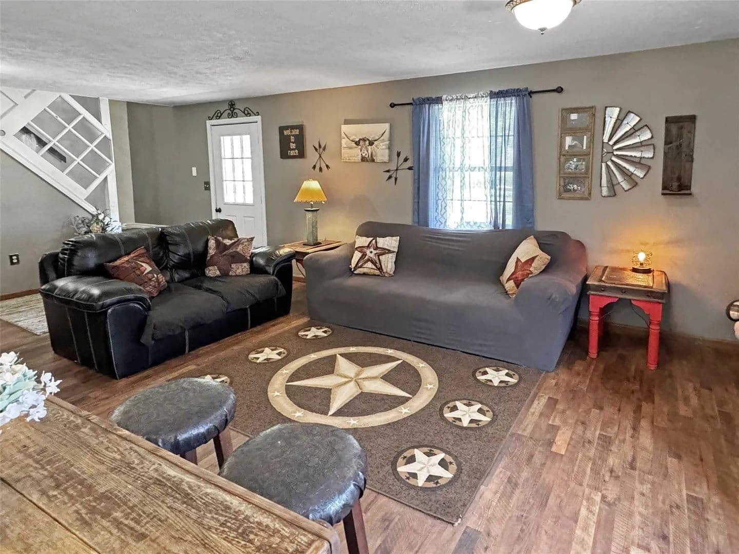 Country home nestled into 16+ acres with a stock pond, HUGE barn, stables, Garage and carport. The barn has been built-out with a kitchen, a full bath and it is the ultimate man-cave or she-shed! The property is very spacious, beautiful, and only 10 MIN FROM LAKE LIMESTONE! No need to worry about your livestock getting out because this property is fully fenced, and wildlife is abundant in the area. The property does have an agricultural exemption status. Morning sunrises with coffee will be effortless with a front and back porch. The property is on city water but also has a water well that can be used for any type of irrigation or watering livestock. This property won't last long!!!