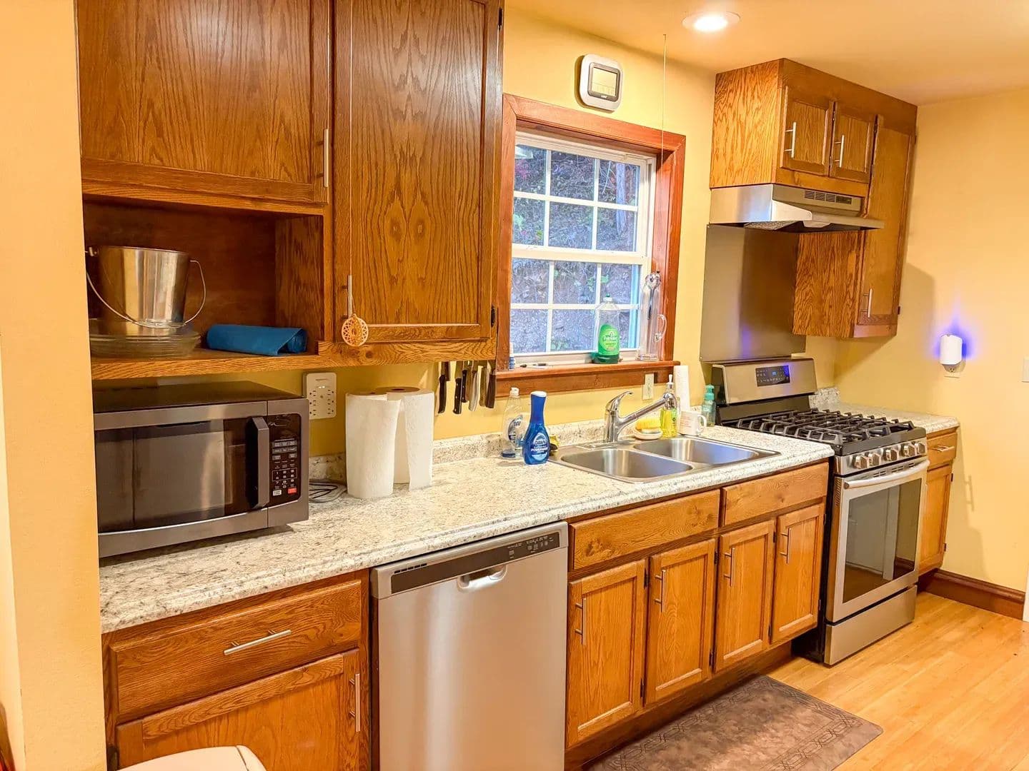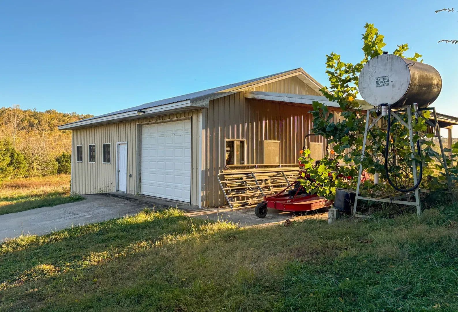 A shop built in 2018, spans 28×40 and offers ample space for equipment, a woodworking area, or storage.