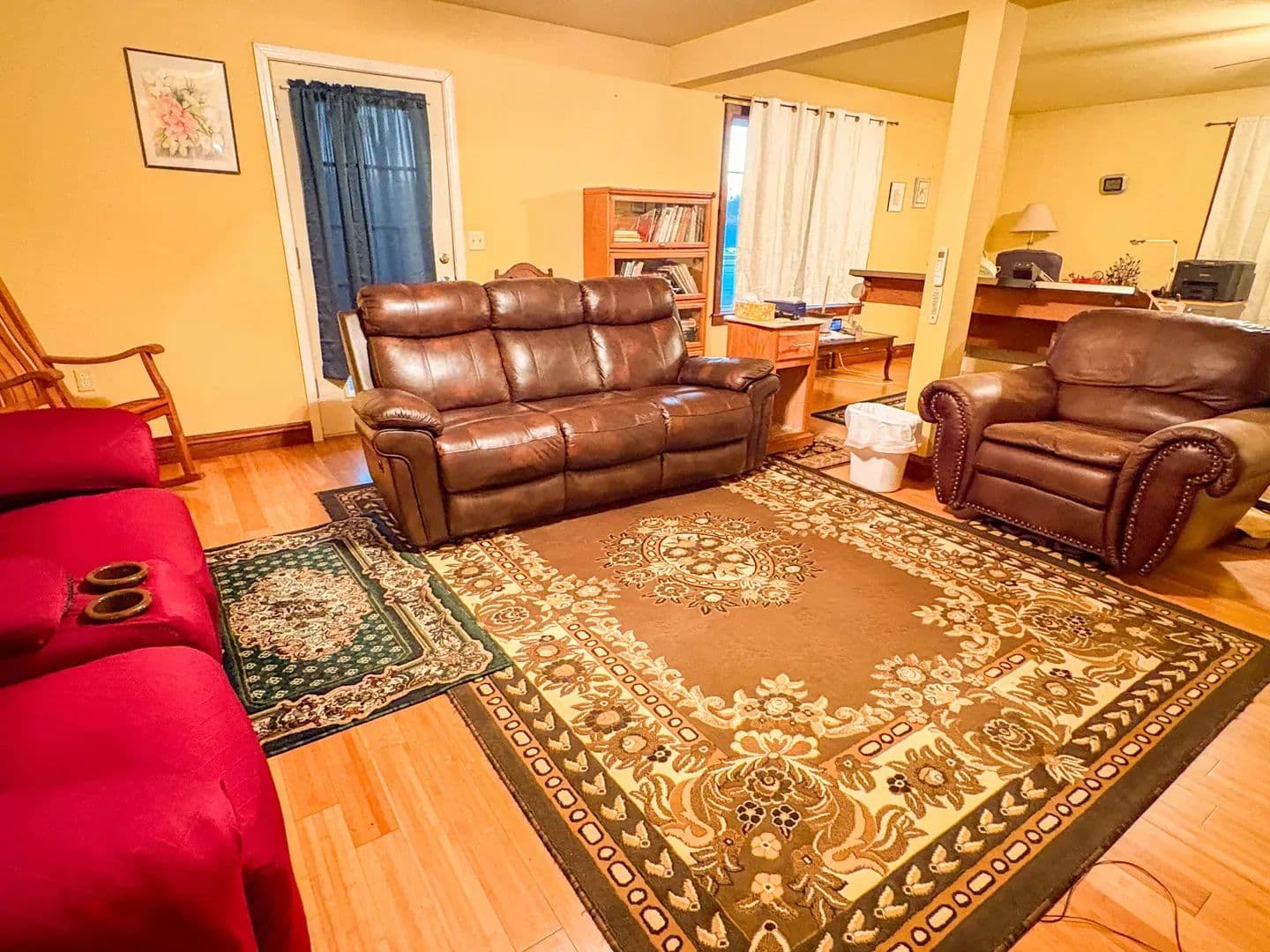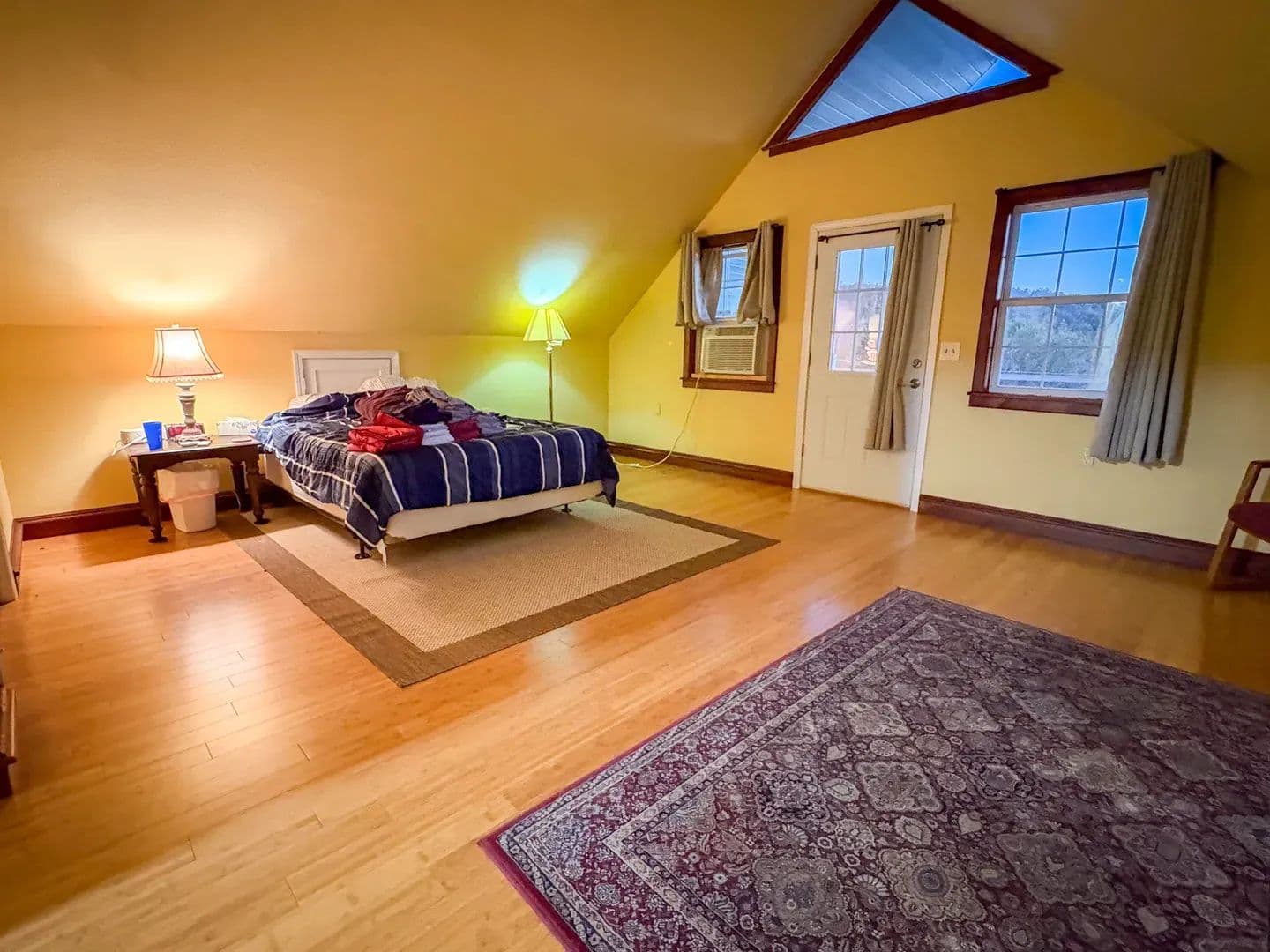 The 3 bed, 3 bath home was built in 2015 and totals 3,100 square feet with 1,200 sq. ft. on the main floor, a 700 sq. ft. loft, and a partially finished 1,200 sq. ft. basement with a garage. Inside, you’ll find bamboo floors with black walnut trim, oak cabinets, and an open floor plan with plenty of natural light. The upstairs bedroom offers an incredible walkout balcony with a gorgeous view of the farm and river. The home has its own private water well, a wood burning heating system, and a septic for wastewater.