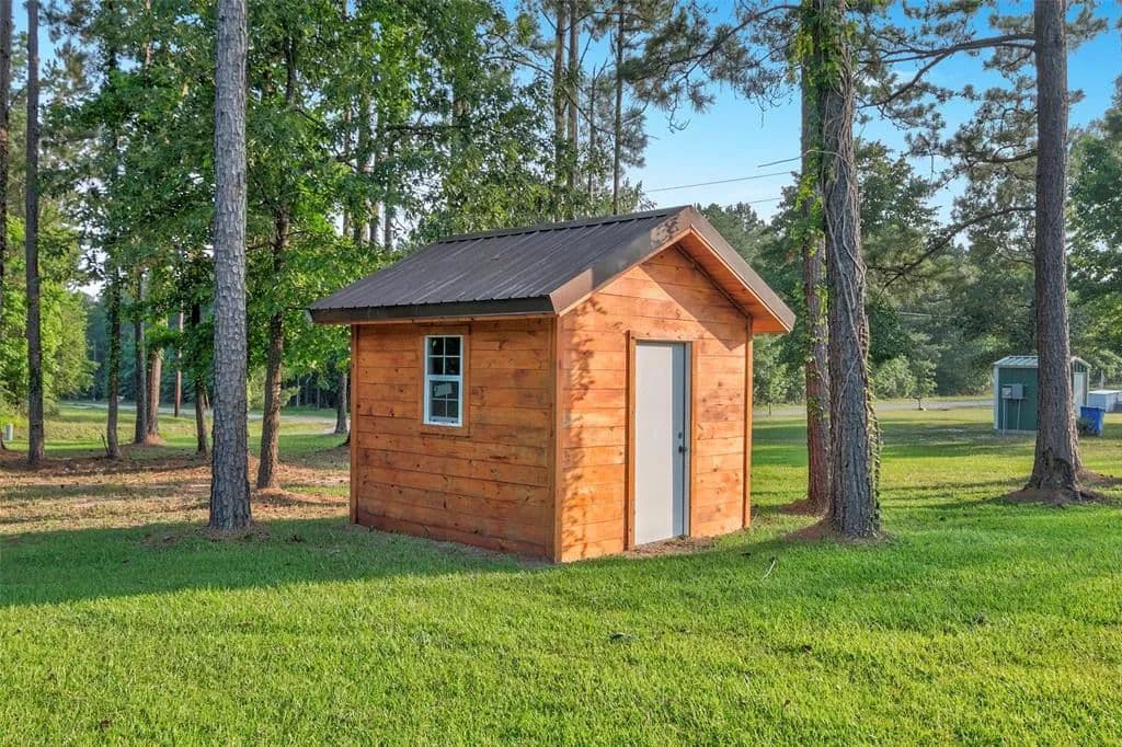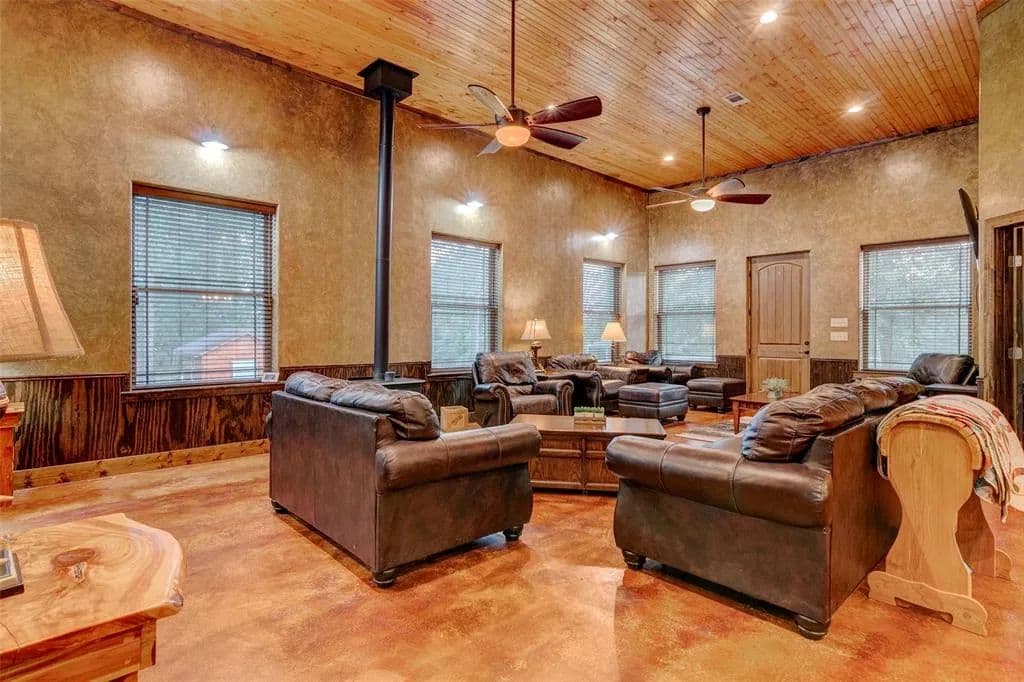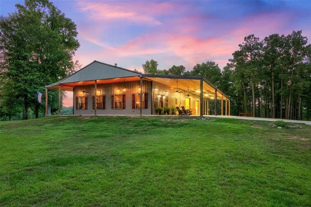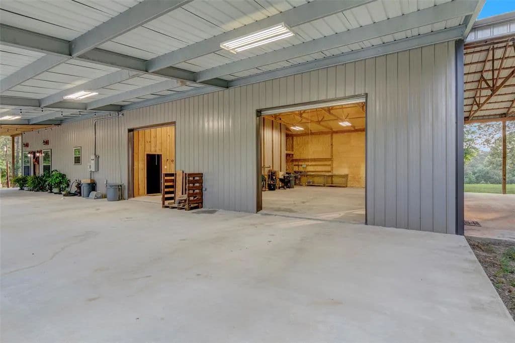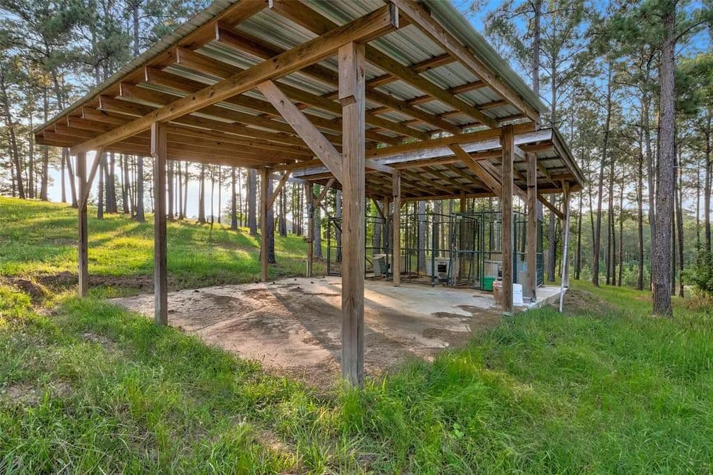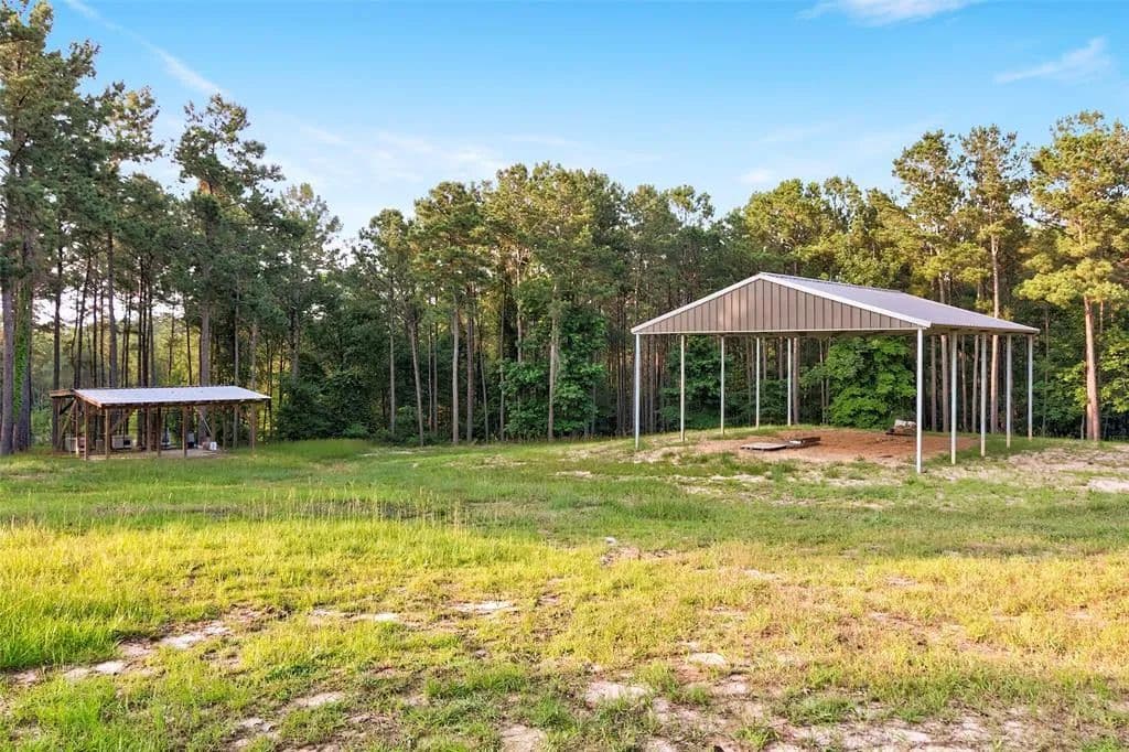 Custom crafted Barndominium in the water front community of Tiger Creek Estates at Lake Sam Rayburn. Situated on 10 rolling acres that meander down to a pond that edges along the Corp access to Lake Sam Rayburn. The privacy afforded amongst the East Texas Pines is amplified along the wrap around covered porch and the warm and spacious open concept living that provides a comfortable backdrop for entertaining and relaxing. A comfortable primary retreat with en-suite bath and large walk-in closet afford privacy for the host and a bunk-room/secondary bedroom provide comfortable lodging for visiting guests or family! The attached 39'x37' garage/shop features 3 roll-up bay doors allowing for storage of vehicles, RV, boats, side by sides, tractors or any other recreational vehicles. In addition, the home features an attached oversized/double carport space for additional vehicle storage, covered pavilion space for entertaining or guest parking. So much more to explore, call today!
