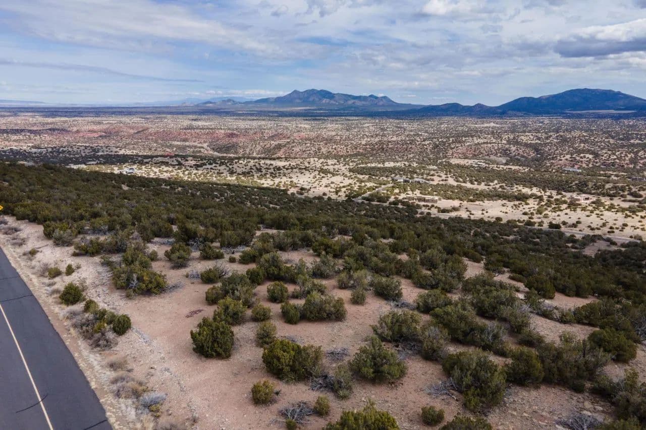 Discover a truly exceptional 10 acre lot offering panoramic views stretching all the way to Santa Fe and Los Alamos. This rare find combines the best of Northern New Mexico's natural beauty with modern accessibility. Paved roads lead you right to the property, nestled within a serene subdivision known for its open spaces and outdoor lifestyle. Enjoy direct access to scenic hiking trails and the year-round creek meandering nearby. Wild horses, deer and other native wildlife often roam the area, adding an enchanting touch of untamed beauty to your everyday surroundings. Underground utilities including natural gas at property line. With only 35 minutes to the ABQ Sunport and 50 minutes to Santa Fe, this lot offers great access for commuters and out-of-state visitors alike.