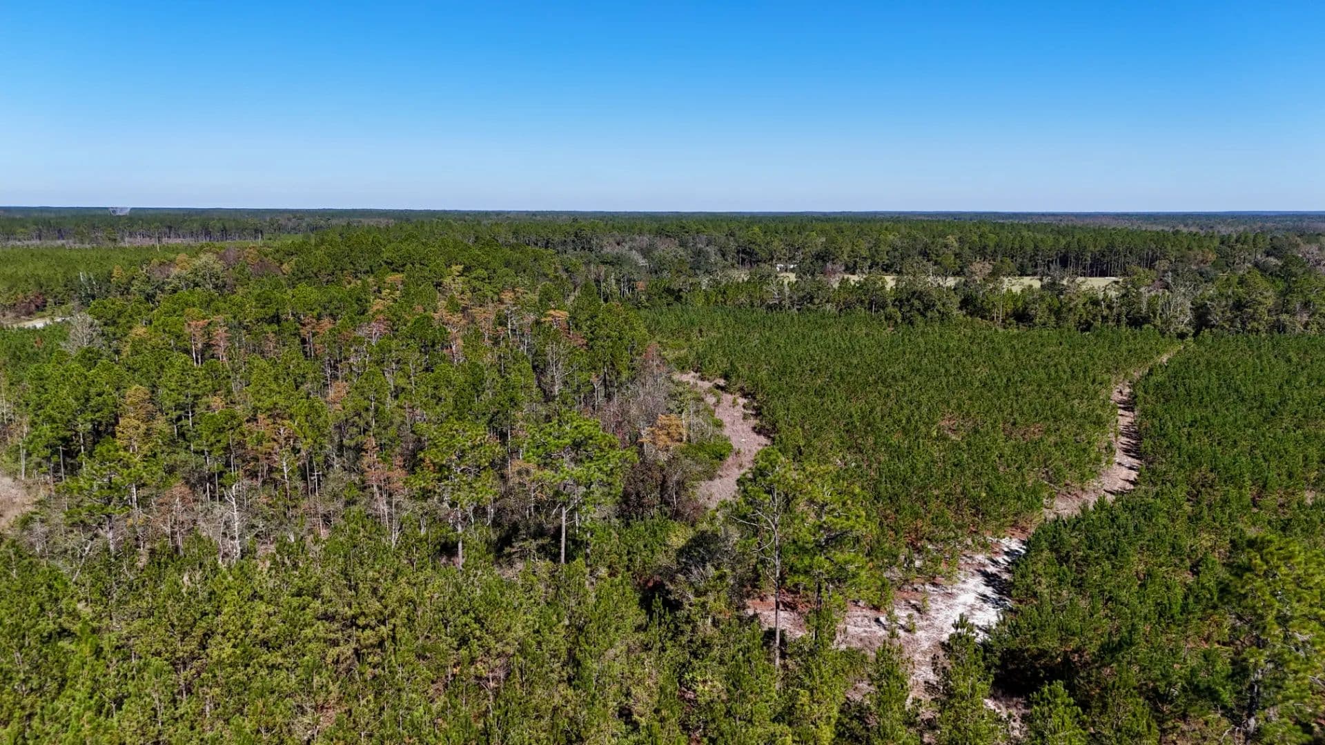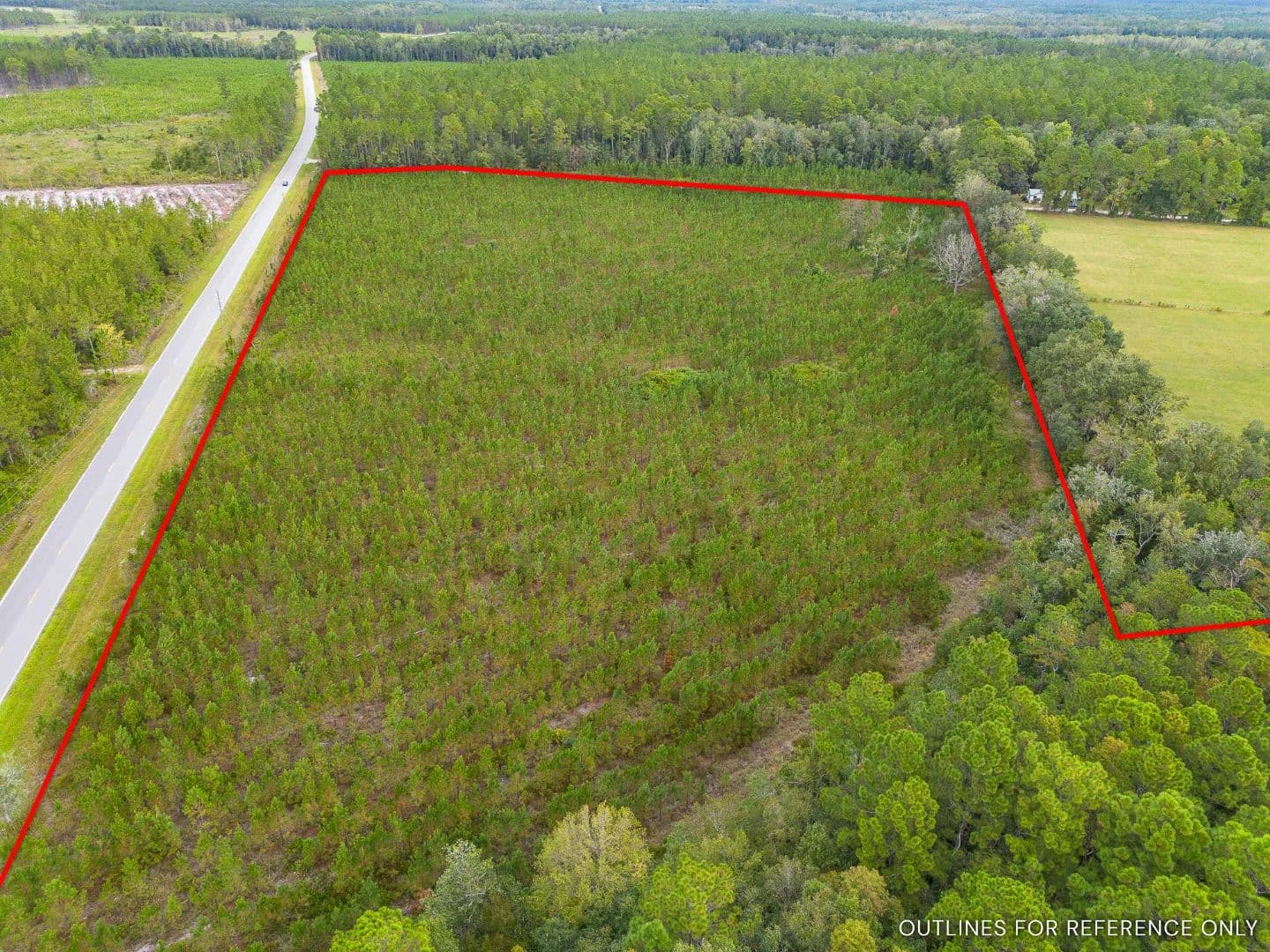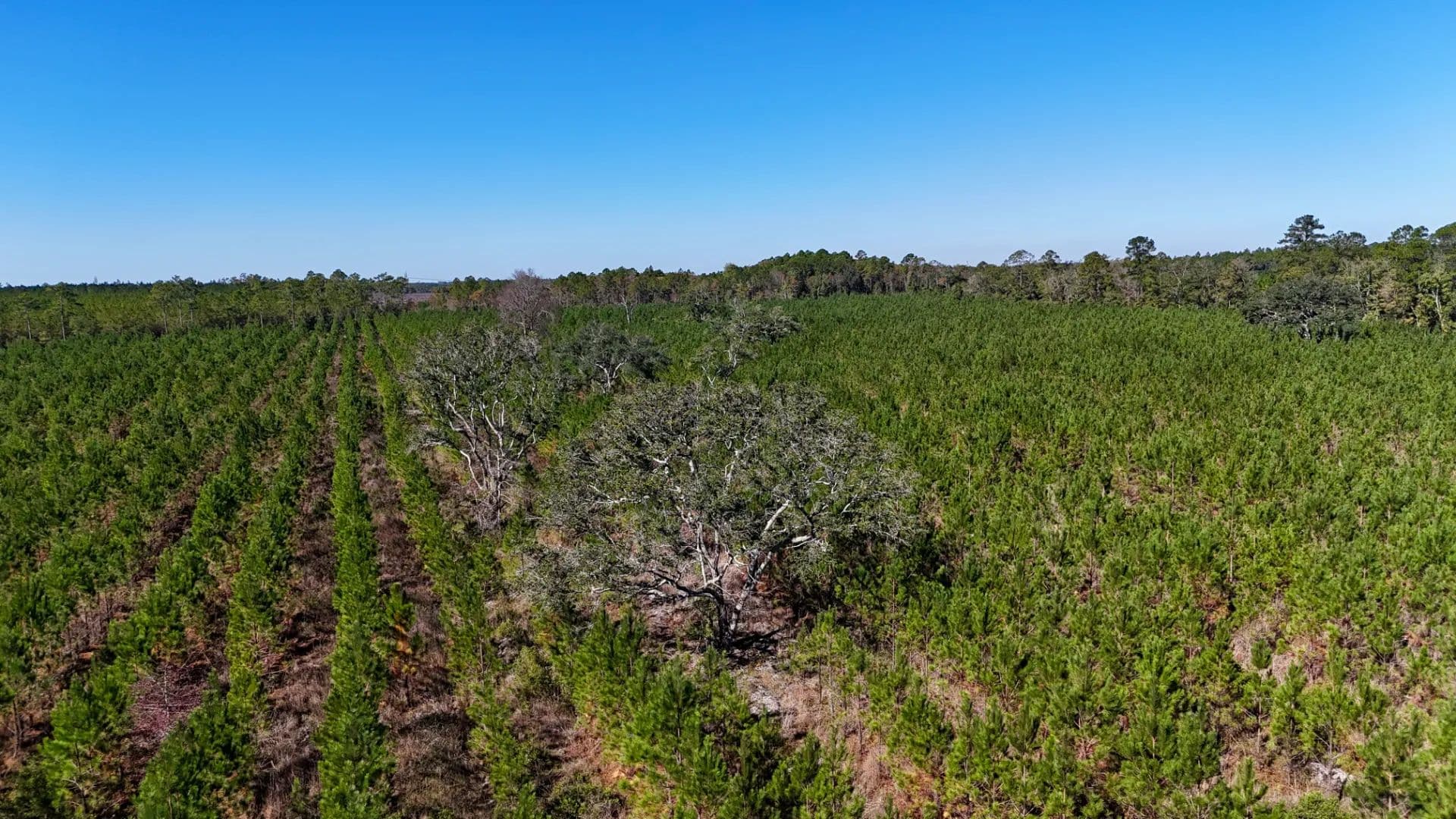 Scattered with majestic live oaks and covered mostly in young, healthy planted pines, the land provides both shade and long-term value. With plenty of road frontage, power on-site, and easy access, this property is ready for your next venture.
