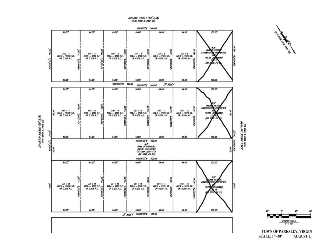 Looking for small town charm? Look no further than one of these lots in the middle of the Victorian Town of Parksley. This is the former site of the Parksley Middle School and conveniently located steps away from the park, brand new Eastern Shore Public Library, downtown commercial shops and restaurants. Cleared lot and ready to go! 18 lots available to choose from and also listed as a package for $400,000. The Town has public water hook up available. Located 10 minutes from Riverside Shore Memorial Hospital and 25 minutes to Wallops Island. Brittany Bundick 757-829-1588 cbharbourrealty@gmail.com