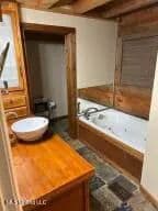 The home features a warm and inviting cabin-style architecture with rustic finishes. The oversized kitchen, den and the 3 outdoor living areas are perfect for entertaining all of your friends and family.