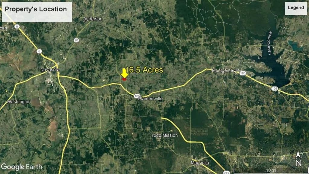This is the 16.5 acre tract of raw land you have been searching for on a black topped road between Montgomery and Navasota! Easy access to Hwy 105, as the property is located close to Hwy 105 down a black topped county road. Additionally, this tract is located only about 3 air miles from the SH 249 and SH 105 connection and approximately 5.4 miles by road. Perfect blend of convenience and clean country living; with rolling topography, long distance views, hefty amount of CR frontage and clusters of trees/wooded areas at the back of the property that offer the privacy one seeks when building a dream home. Several beautiful home site options that offer long distance views! Electricity access at both the front and back of this tract, allowing multiple options for bringing power to your build-site; also public water line at the county road. Currently under ag exemption that can be easily maintained moving forward. Call today to schedule your appointment to view this property in person!