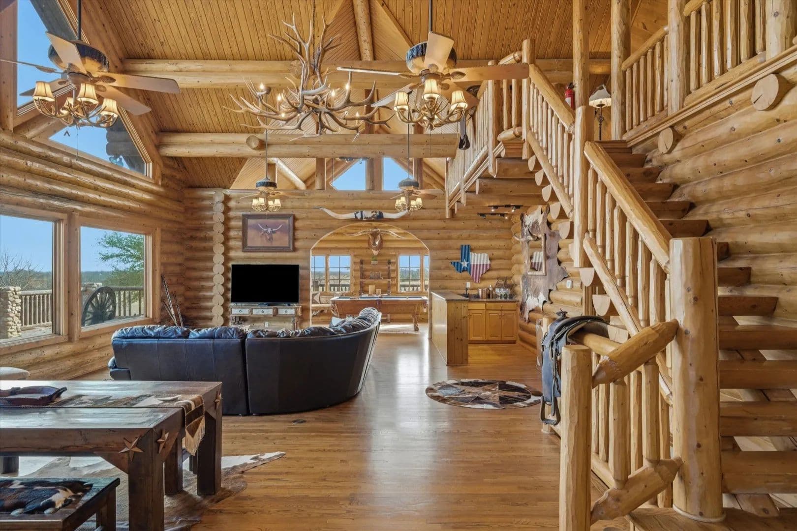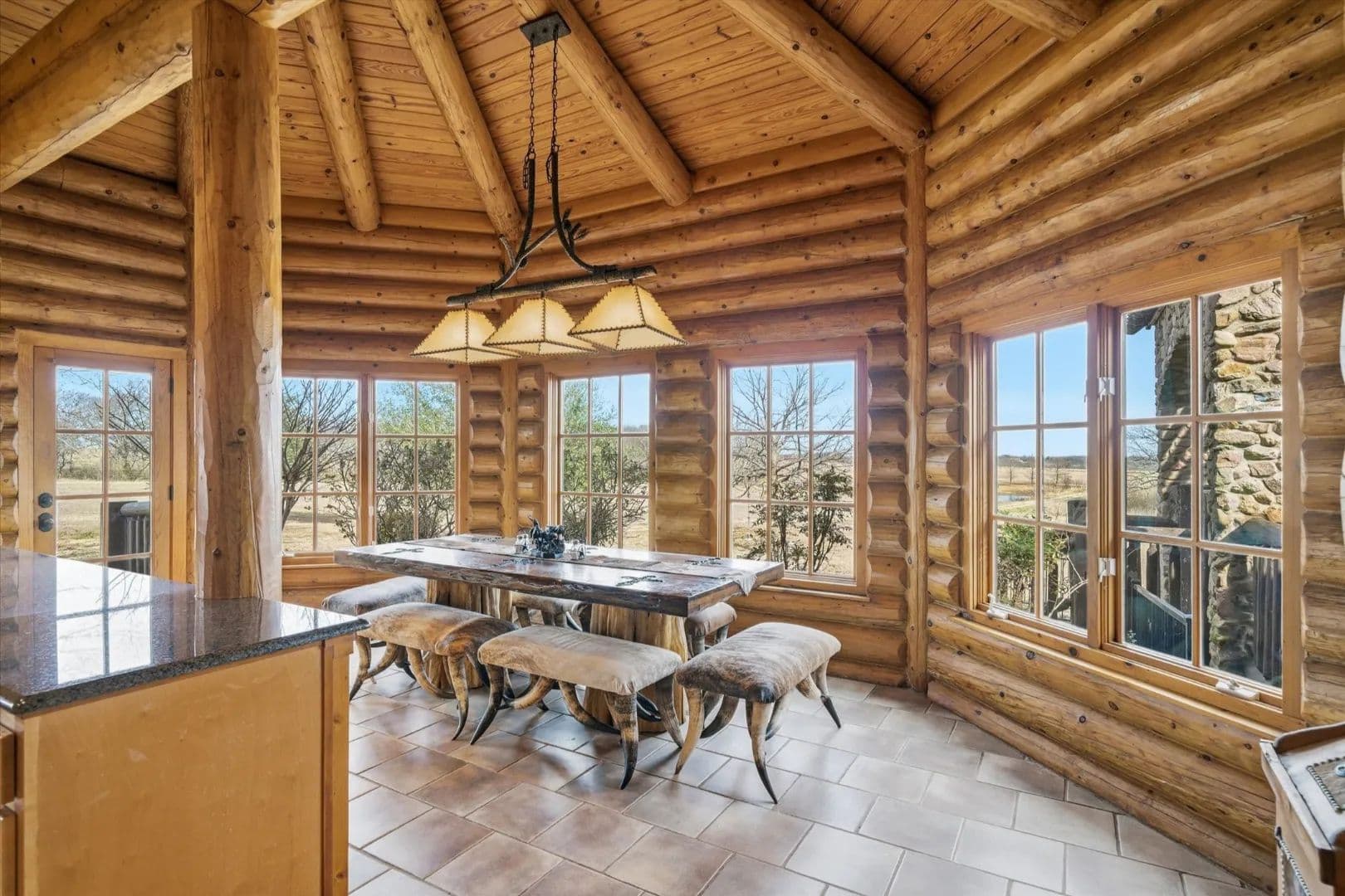 and expansive windows fill the home with natural light and showcase panoramic views of the surrounding acreage. 1st