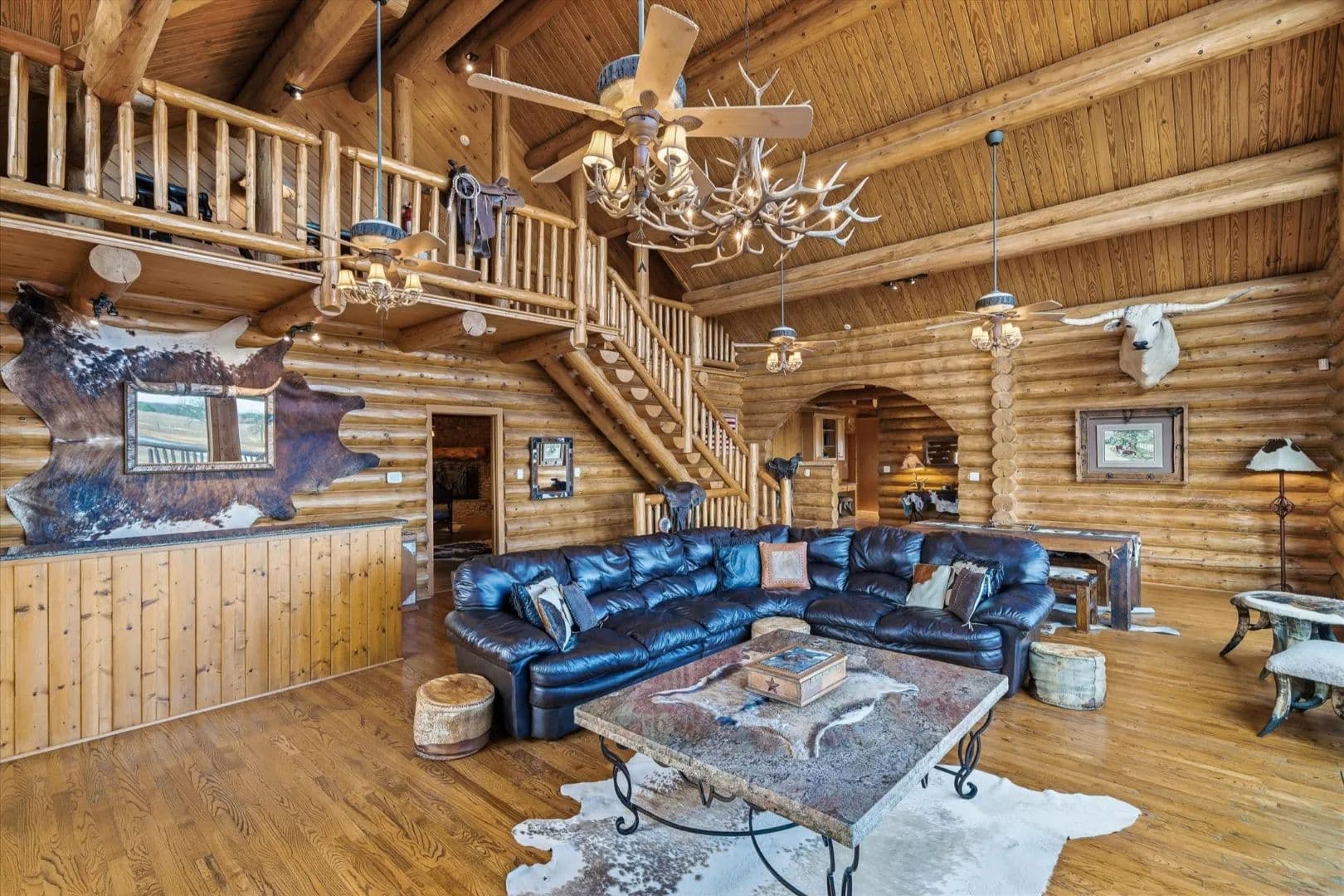 exclusivity while remaining close enough for commuting. 3 story log home with stone accents features 6 beds & 5