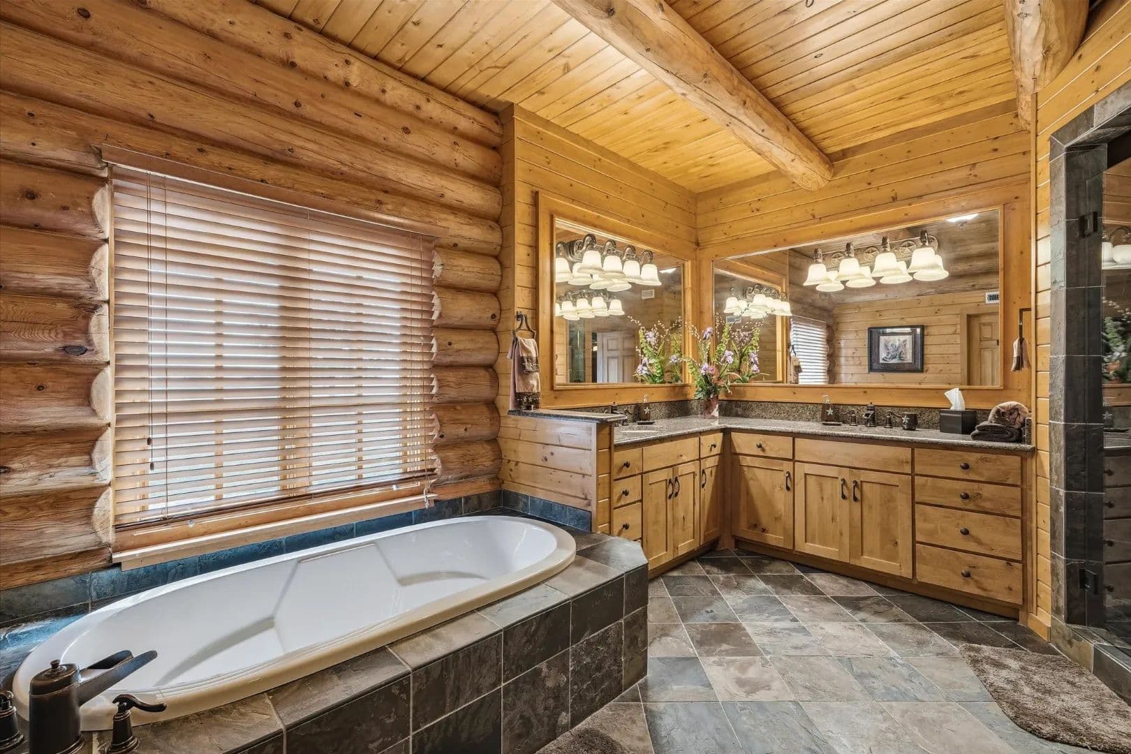 baths, designed for entertaining, extended stays, and relaxed country living. Vaulted ceilings, exposed timber beams,