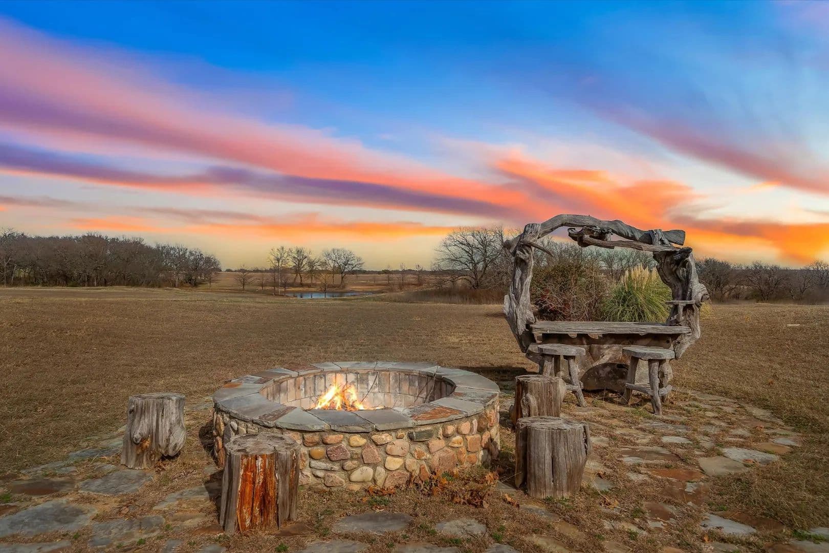 Dallas. Outdoor amenities include firepit, pond views & space for unforgettable gatherings under the stars. Video tour