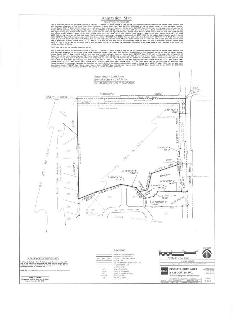 Unlock the potential of this expansive 32.96-acre canvas, strategically situated just off I-80, beckoning to be a cornerstone of future highway development, logistics, fueling station, retail, or any commercial venture you envision. This prime location is a gateway to endless possibilities. Elevating its appeal, the property has been annexed into the City of Marseilles, offering the advantages of city water and sewer conveniently positioned at the southeasterly corner. Imagine the seamless fusion of urban amenities and expansive commercial space. Not just a parcel of land but a gateway to opportunity, this property is eligible for Enterprise Zone benefits, providing a favorable environment for your innovative ideas to flourish. While currently zoned A-2 Agricultural, the forward-thinking owner plans to pursue B-Business or I-Industrial rezoning, opening the doors to a myriad of business ventures. Comprising three PINs (15-37-214-000, 15-37-215-000, and 15-37-216-000), this property is more than just acreage; it's a strategic investment in the future. Secure your vision with earnest money via certified funds payable to Coldwell Banker Commercial Real Estate Group, and let your commercial dreams take root in this thriving landscape of possibilities.