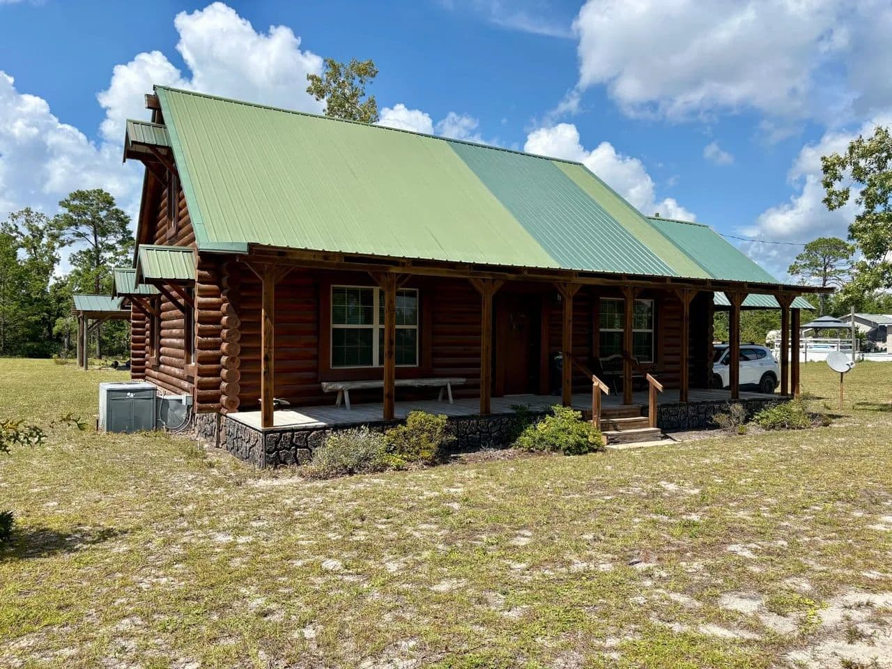 Escape to rustic charm just minutes from the Gulf Coast with this stunning 3-bedroom, 2-bath custom log cabin in Perry, Florida. Hand-built with craftsmanship and care, this two-story retreat is constructed from wood sourced directly from Lake Park, Georgia—bringing both authenticity and character to every inch of the home. Step inside and be greeted by soaring vaulted ceilings that create a warm, open living space perfect for entertaining or quiet evenings by the fire. Every detail of this home reflects the dedication and artistry of its builders. Nestled less than four miles from the ocean, the property offers the perfect blend of wooded privacy and coastal convenience. Whether you're looking for a permanent residence, a vacation escape, or a one-of-a-kind investment opportunity, this log cabin is a rare find that brings timeless design and natural beauty together in one unforgettable location.