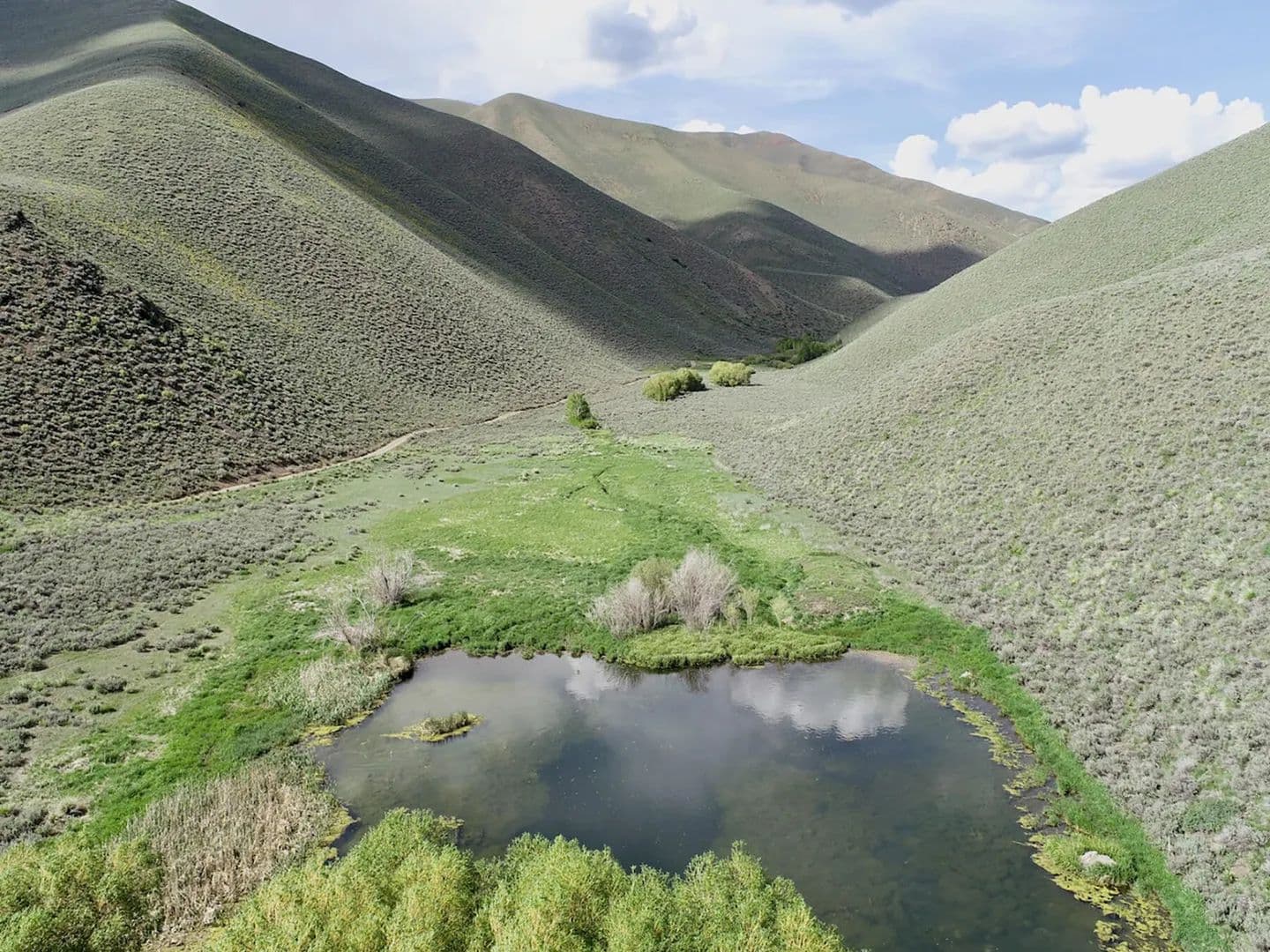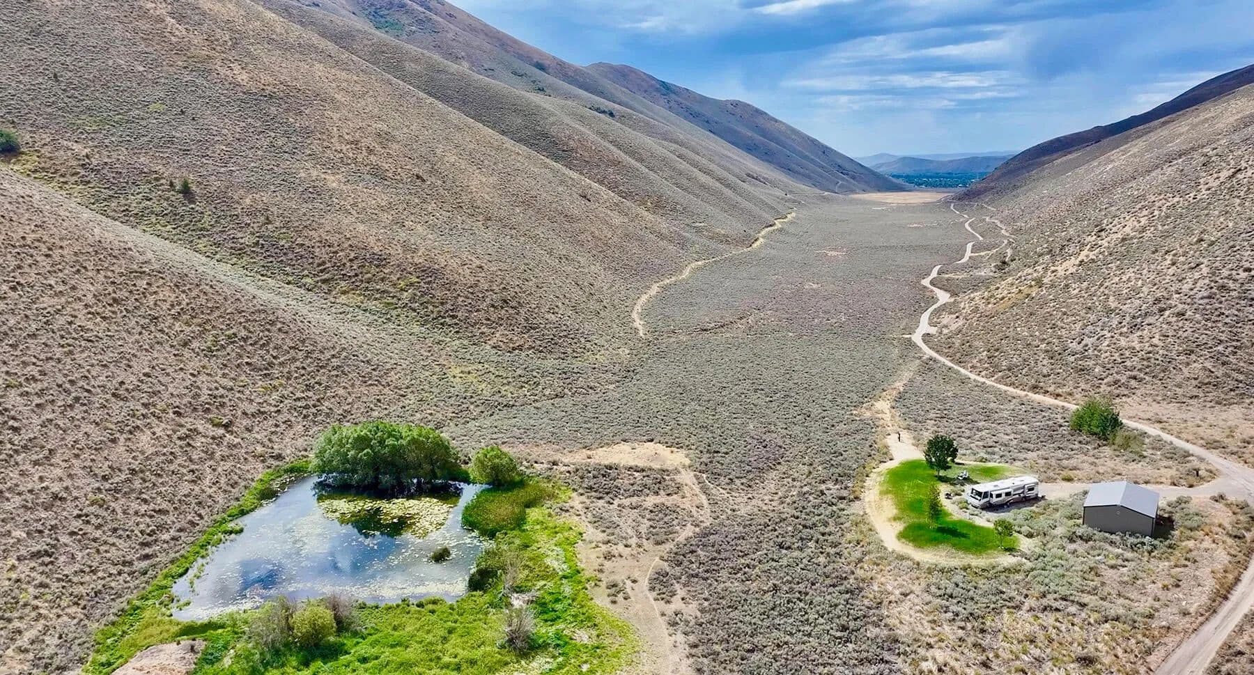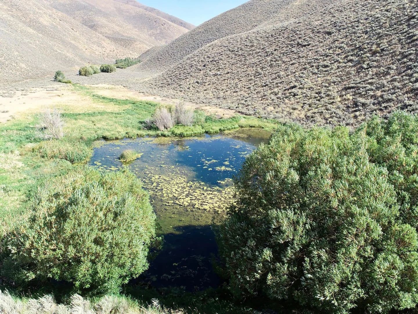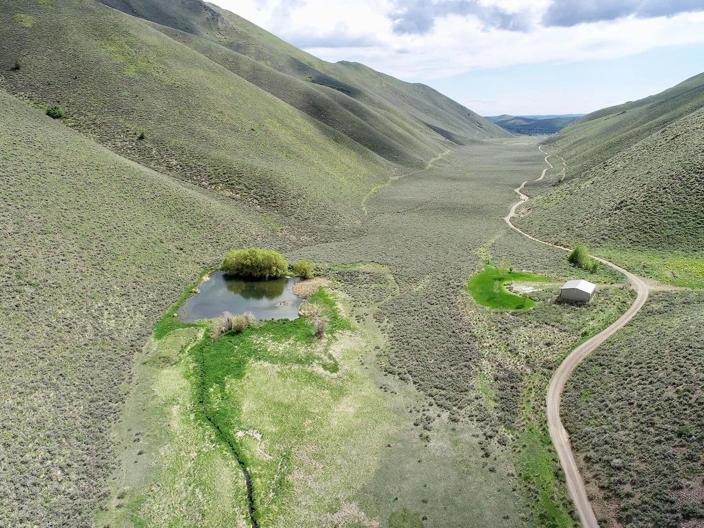 Spirit Woman Ranch is an 80-acre property located 3 miles NE from Bellevue and 20 miles from Sun Valley Resort, it sits in a secluded canyon surrounded by federal lands. A spring-fed creek flows through the ranch, with a pond and water rights. The land includes a 1,080 sq. ft. garage, a homesite, and a septic system. It offers off-grid potential, access via a seasonal road.