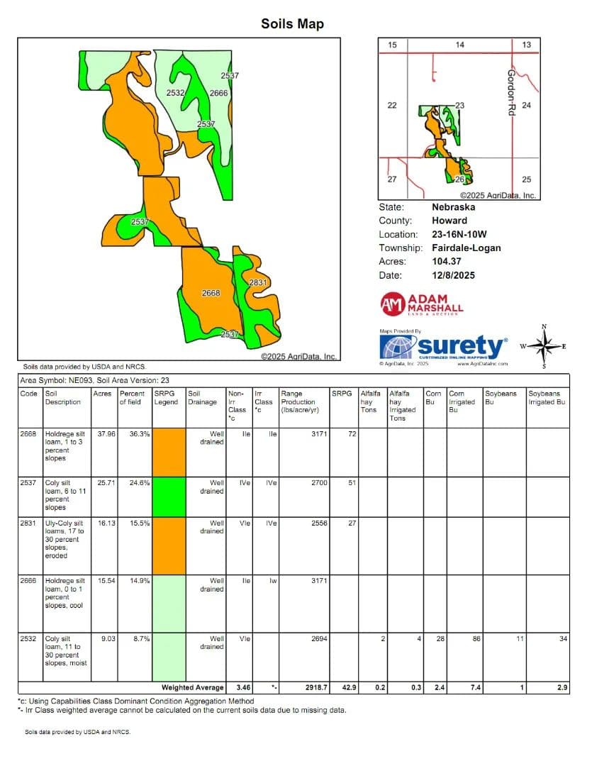 There is a total of 104.37 acres that tillable with mostly Holdrege silt loam and Coly silt loam soils