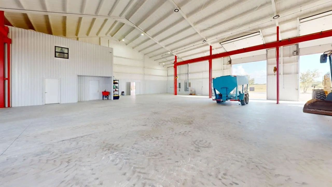 This exceptional high-fence ranch that was once part of the Ford Ranch, located just 5 miles south of Melvin, Texas, offers an incredible setup for hunting and ranching enthusiasts. With blacktop and county road frontage, an improved road leads to the headquarters featuring a 17,225± sq. ft. steel barn with a 3/4 bedroom residence, office space, and a 5-ton bridge crane.