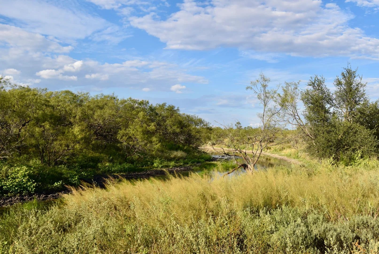 The ranch is extremely well-watered with an Ellenburger well producing 150 GPM, feeding two half-acre ponds, an irrigated hay field, and ±4 miles of underground water distribution. Reubes Creek runs through 2.5± miles of the property, offering scenic water features and habitat for native wildlife.