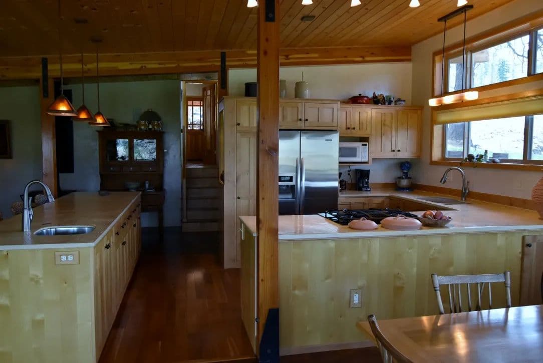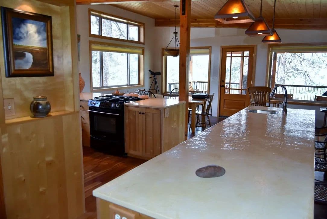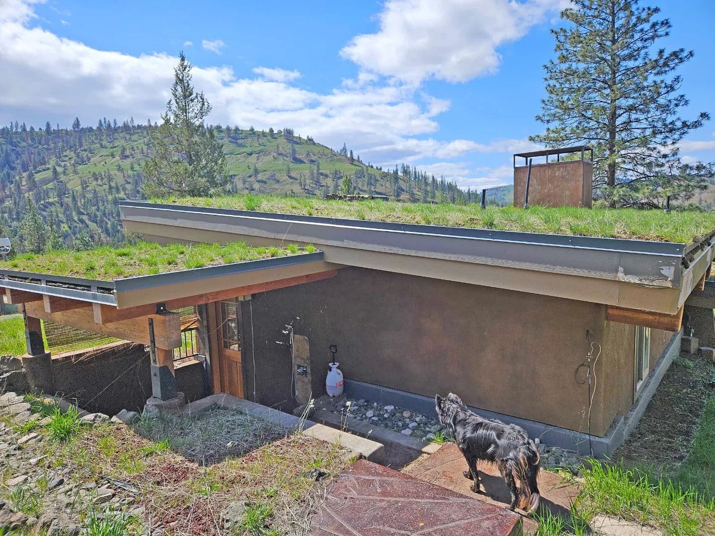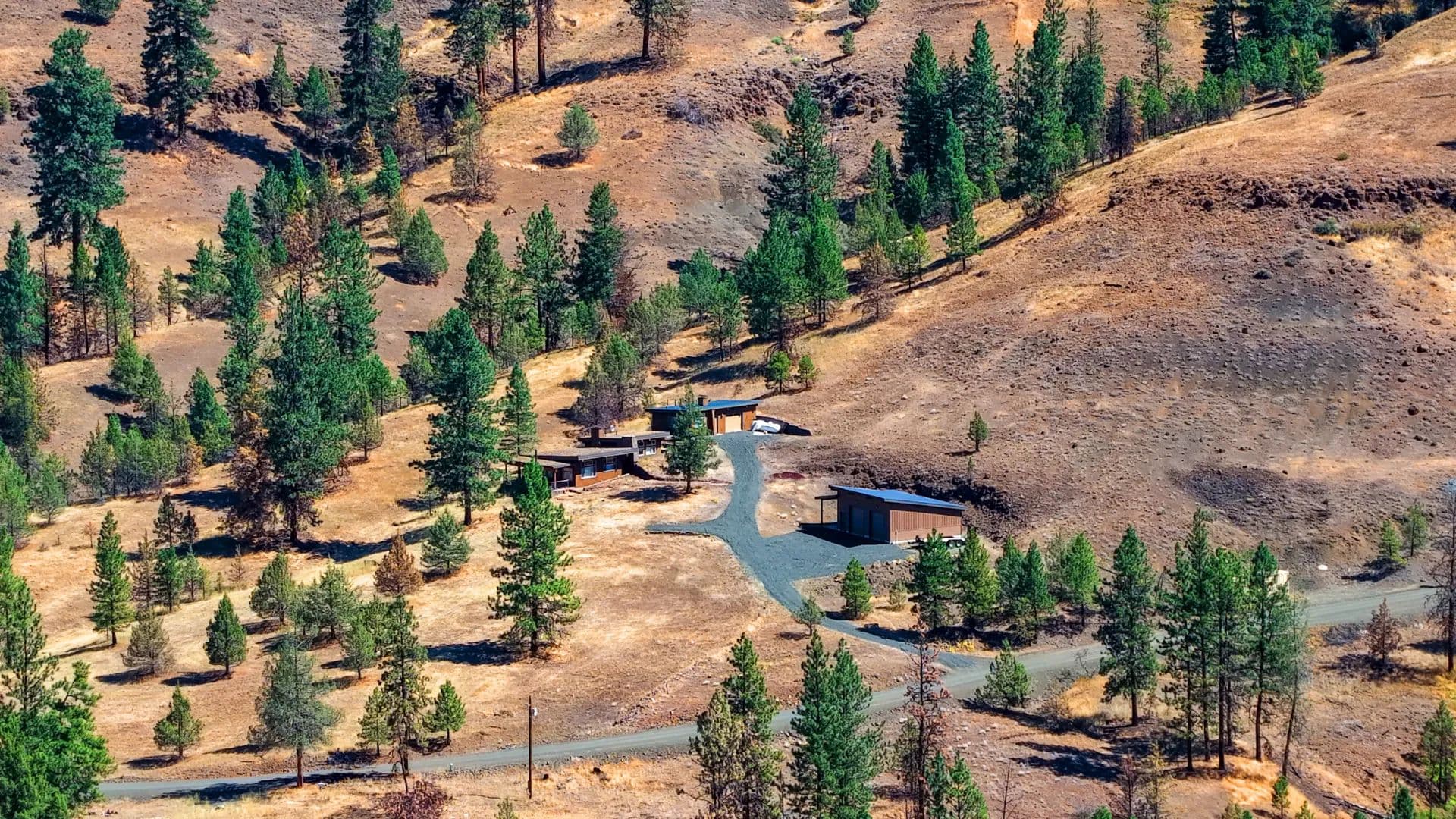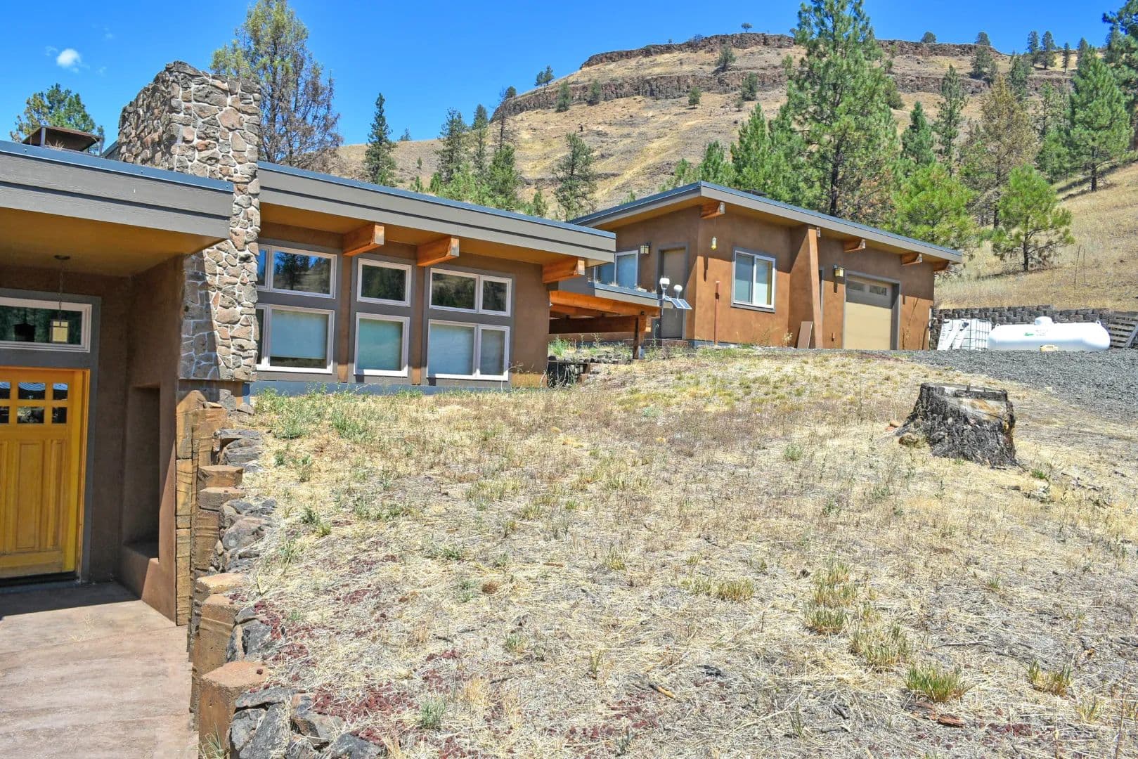 This contemporary split-level custom built home was inspired by a Frank Lloyd Wright design and is energy effcient with fire resistant construction and living earth roof. Acid stained insulated concrete floors with radiant heat throughout. Italian hard trowel finish walls, built-in Alder hardwood cabinets and closets. Kitchen features hardwood cherry floor and poured concrete counter tops plus cabinets pullouts, gas Jenn-Air down draft range, KitchenAid side by side fridge and a large island with a bar sink. Tongue and groove pine ceiling between posts and beams throughout the home. There are gas on-demand hot water heaters and a high efficiency electric boiler for the in-floor heat. Power and telephone run underground. Domestic well water is pumped to cistern, heat is Woodstock Soapstone Company hybrid wood stove. Open air covered porch with outdoor rock fireplace, built with on-site stone. A walk-in root cellar is incorporated underneath the porch. The master bedroom and bathroom (with tile shower and laundry facilities) both have floor to ceiling built-in closets. Entry is here to covered porch with an outdoor shower, rock lined flower bed. Also a plus is rainwater storage tanks for lawn watering. Guest quarters are 1 bedroom and 1 bath with attached garage with wood stove that can be converted into living area. New metal shop with double overhead doors, concrete floor and covered carport. This remote, rural retreat is 100 feet from the North Fork of the John Day River. Enjoy rafting, fishing and recreation at its finest with LOP tags in the Heppner Unit. This 310 acre timbered offering has 3/4 mile of Wrightman Creek frontage and borders BLM. Access year round is on 25 miles of good county maintained gravel road from Hwy 395. 2600 to 3300 elevation with great growing climate for gardening. This is turnkey and a perfect sancutuary for full time living or a weekend getaway. Partially fenced with natural landscape. Wildlife abound on this scenic sanctuary.Must see!