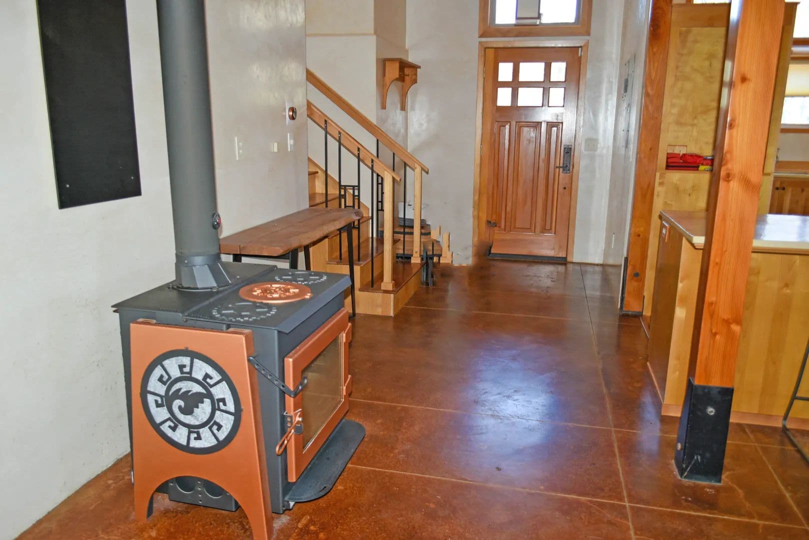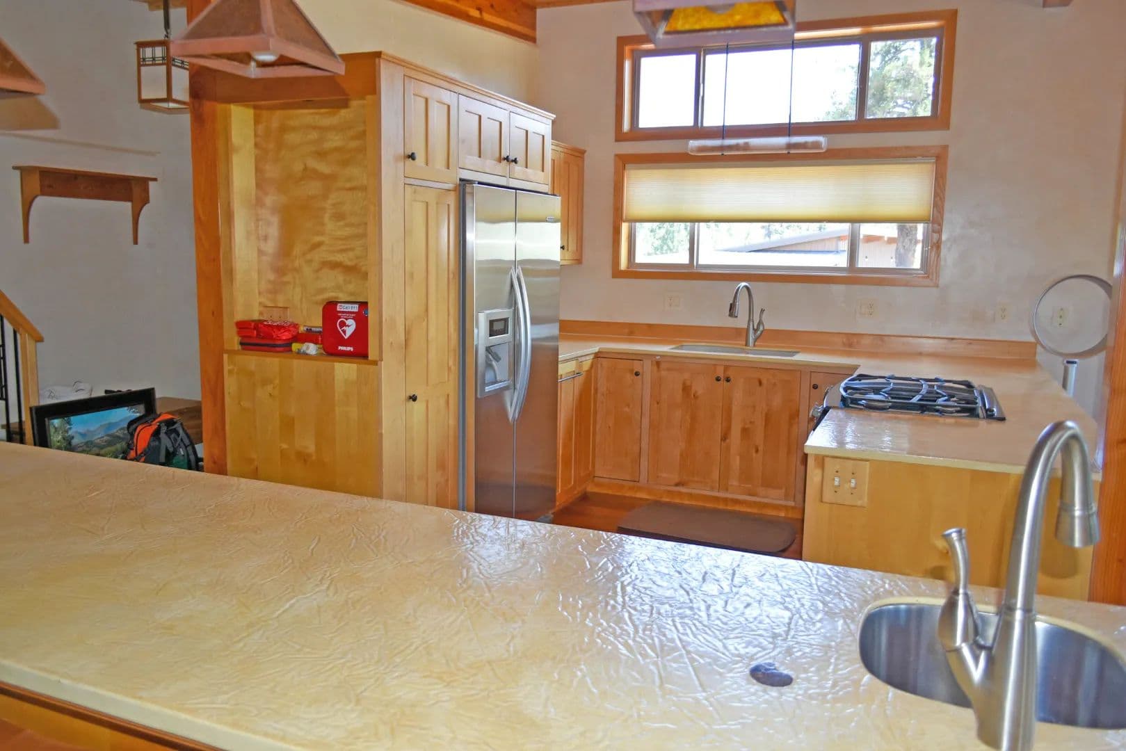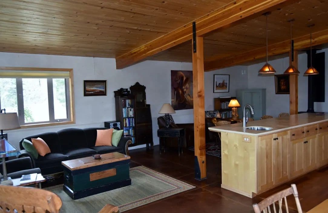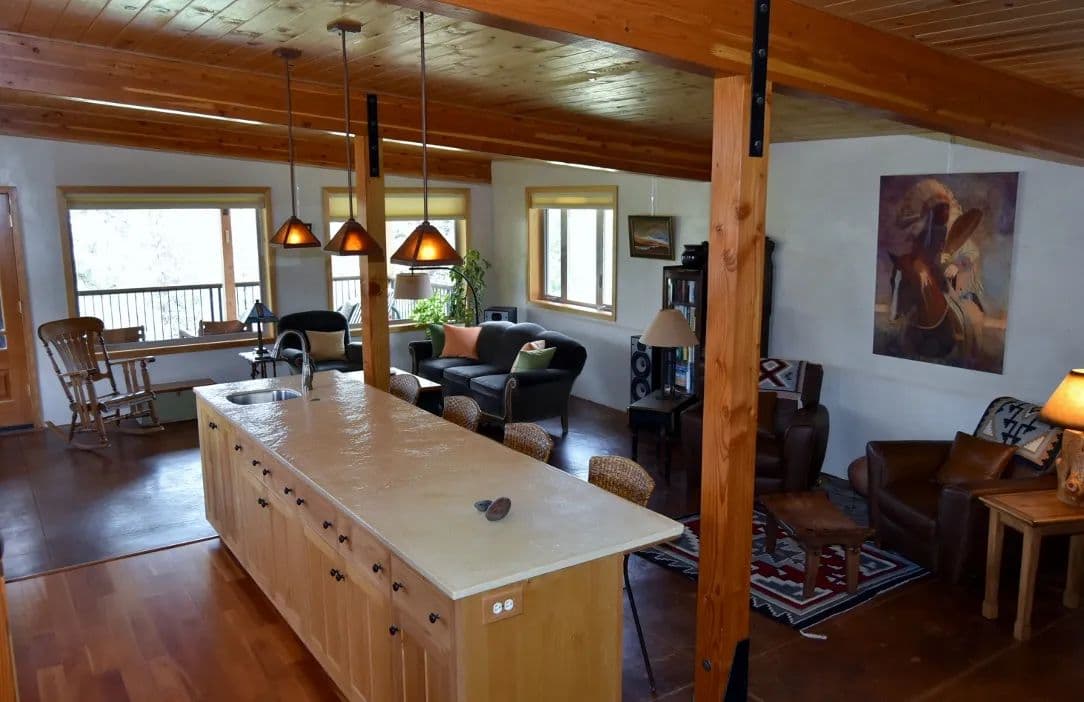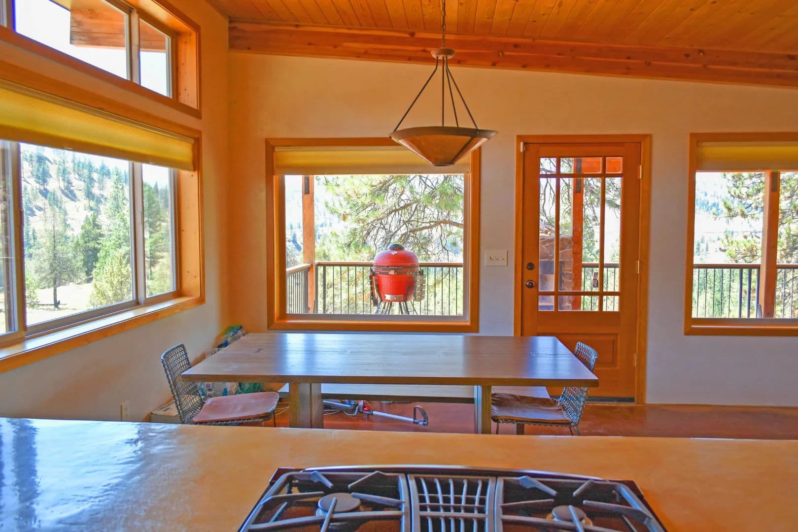 This contemporary split-level custom built home was inspired by a Frank Lloyd Wright design and is energy effcient with fire resistant construction and living earth roof. Acid stained insulated concrete floors with radiant heat throughout. Italian hard trowel finish walls, built-in Alder hardwood cabinets and closets. Kitchen features hardwood cherry floor and poured concrete counter tops plus cabinets pullouts, gas Jenn-Air down draft range, KitchenAid side by side fridge and a large island with a bar sink. Tongue and groove pine ceiling between posts and beams throughout the home. There are gas on-demand hot water heaters and a high efficiency electric boiler for the in-floor heat. Power and telephone run underground. Domestic well water is pumped to cistern, heat is Woodstock Soapstone Company hybrid wood stove. Open air covered porch with outdoor rock fireplace, built with on-site stone. A walk-in root cellar is incorporated underneath the porch. The master bedroom and bathroom (with tile shower and laundry facilities) both have floor to ceiling built-in closets. Entry is here to covered porch with an outdoor shower, rock lined flower bed. Also a plus is rainwater storage tanks for lawn watering. Guest quarters are 1 bedroom and 1 bath with attached garage with wood stove that can be converted into living area. New metal shop with double overhead doors, concrete floor and covered carport. This remote, rural retreat is 100 feet from the North Fork of the John Day River. Enjoy rafting, fishing and recreation at its finest with LOP tags in the Heppner Unit. This 310 acre timbered offering has 3/4 mile of Wrightman Creek frontage and borders BLM. Access year round is on 25 miles of good county maintained gravel road from Hwy 395. 2600 to 3300 elevation with great growing climate for gardening. This is turnkey and a perfect sancutuary for full time living or a weekend getaway. Partially fenced with natural landscape. Wildlife abound on this scenic sanctuary.Must see!