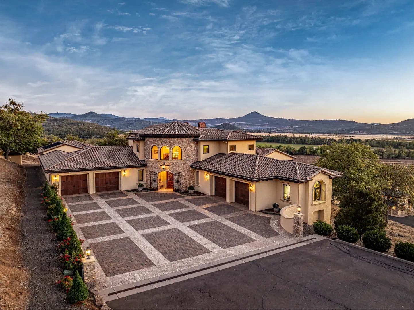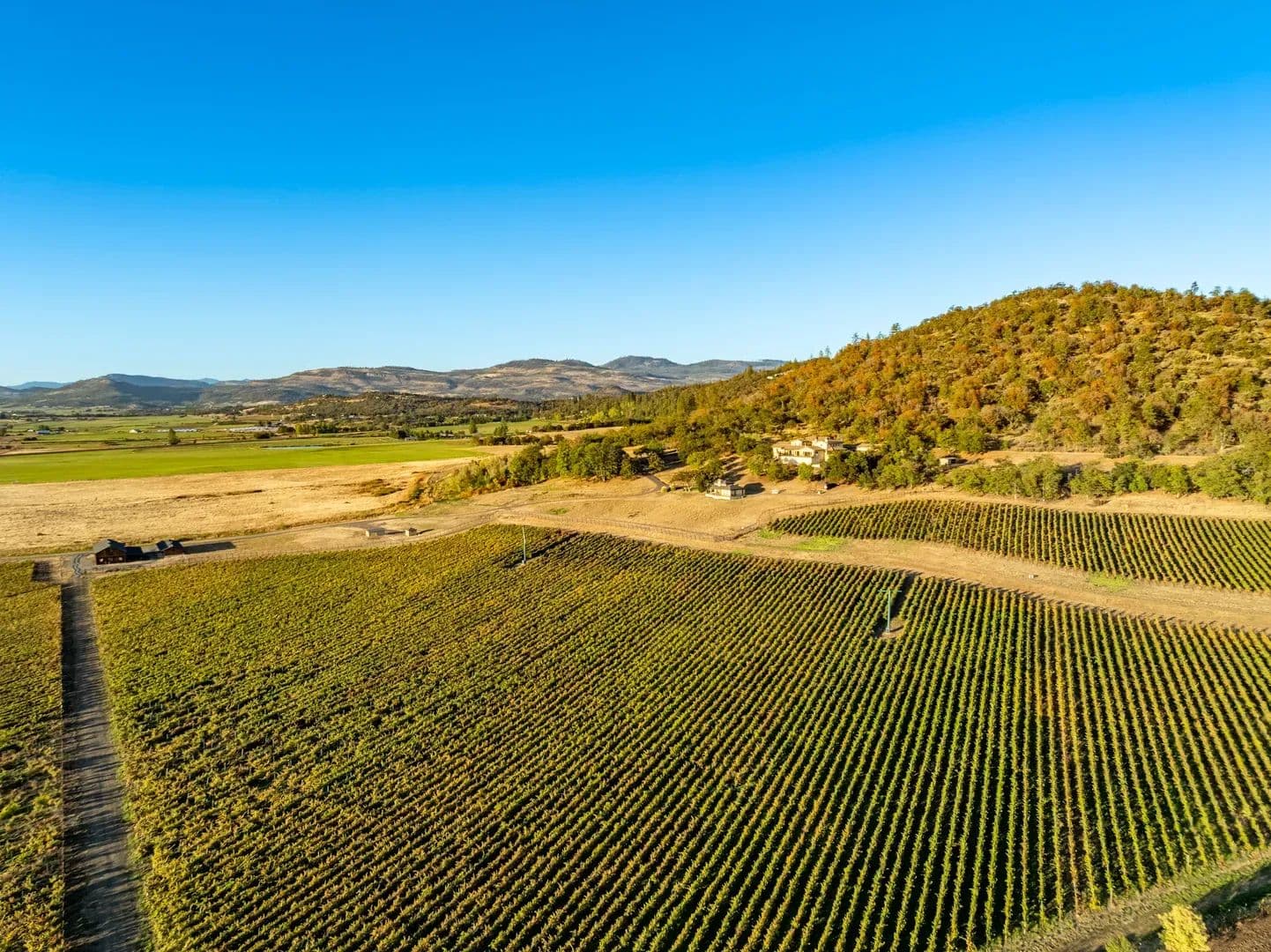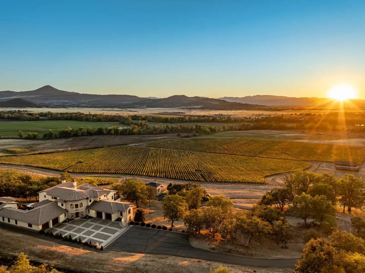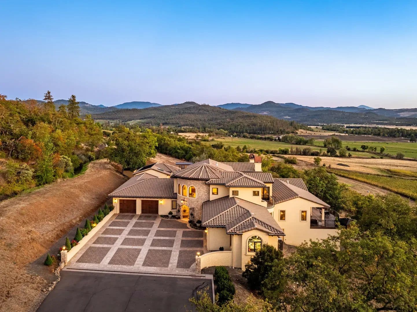 The EstateEvery element of this residence reflects an uncompromising commitment to design, craftsmanship, and livability. The home’s architectural vision—a Mediterranean villa reimagined for the Pacific Northwest—balances grandeur with practicality, creating a space that is both inspiring and inviting. At its heart lies a stunning private courtyard that connects the main wings of the home, blending indoor and outdoor living in timeless Tuscan arrival, the grand entry immediately sets the tone with marble flooring, an elegant circular staircase, a private elevator, and soaring 27-foot cathedral ceilings. Natural light fills the home, illuminating intricate woodwork and refined finishes that flow throughout the main a floor plan centered around the interior courtyard, the first space beyond the foyer is the formal dining room—an elegant setting with floor-to-ceiling windows, stately columns, and a custom fireplace with imported mantle. Across the hall, a climate-controlled 2,000-bottle wine room displays handcrafted shelving and warm wood open-concept kitchen and great room deliver both sophistication and function. Anchored by an expansive granite island, the kitchen offers professional-grade appliances, custom cabinetry, ample storage, and an inviting bar for entertaining. The adjoining great room, with its 22-foot vaulted ceilings, features a classic Rumford fireplace and windows framing mountain and courtyard views. The courtyard itself serves as an outdoor extension of the living space—complete with fireplace, large television, water feature, and multiple areas for year-round enjoyment. A bright breakfast nook and a covered patio with built-in barbecue further enhance the home’s indoor-outdoor the west, the family room offers a warm and inviting atmosphere with a custom library, wet bar, and sweeping views of the vineyard and distant mountains plus french doors lead to the vineyard deck with great views. The adjacent executive office is an elegant workspace designed for both focus and primary suite completes this wing, providing a tranquil retreat. The spacious bedroom features a sitting area, fireplace, and direct access to the vineyard deck where the valley and mountain vistas unfold. The spa-like bath includes dual custom vanities, a large walk-in tile shower, jetted soaking tub, and heated floors. A luxurious walk-in closet with built-ins connects discreetly to a secondary entrance near the foyer and main garage for , vaulted ceilings with wood beams and turret-style architecture create dramatic appeal. One wing features two guest bedrooms, a guest bath, and a private balcony, while the other includes a spacious bonus room with built-in cabinetry, vaulted ceilings, and a balcony overlooking the courtyard and mountain eastern wing of the main level includes a large utility and laundry room with mudroom, second office, and powder bath, plus direct access to the second garage. The adjoining recreation space includes a gym, full bath, infrared sauna, and an impressive indoor Pebble Tec saltwater pool—heated by solar or furnace and supported by its own HVAC system. Outside, a large south-facing patio offers yet another inviting space for entertaining or quiet features include two attached garages, a finished basement workshop, raised garden beds, and a dedicated garden room. The fully fenced garden even boasts fine wire mesh and gravel, greatly deterring loss of produce from nature’s critters. The home’s stucco and stone exterior, tile roof, geothermal heating and cooling, and whole-house Cummins backup generator combine to deliver timeless design, exceptional efficiency, and modern peace of CasitaPerched atop the vineyard is a beautiful 851-square-foot casita with one bedroom and one full bathroom. Designed with the same craftsmanship and finishes as the main residence, it features a stucco exterior that complements the estate’s Mediterranean style. Inside, the open layout includes a full kitchen, comfortable living area, and private bedroom suite. Doors open to a spacious deck overlooking the vineyard—an ideal place to relax and enjoy the views. The casita is perfect for guests, caretakers, or as a private VineyardThe property includes Celtic Moon Vineyards, a 42.5-acre vineyard in the Rogue Valley AVA near Eagle Point. Established in 2014, it sits on gently sloping, southwest-facing terrain with good sun exposure and soils. The vineyard is fully fenced and designed for efficient, mechanized operation. There are multiple varietals, including Pinot Noir, Syrah, Chardonnay, Viognier and more. Planted on 7’ x 4’ spacing with a Vertical Shoot Position (VSP) trellis system, the vineyard also uses drip irrigation. Frost protection and monitoring systems include five wind machines and two weather The property holds 77.44 acres of irrigation rights—69.70 acres (RRVID) and 7.74 acres (MID)—all delivered entirely through the RRVID system by inter-district agreement. The RRVID line is piped and serves as the main water source, providing around 40 PSI at the point of diversion. Domestic water is supplied by two private wells and a spring, with ~6,000 gallons of total storage. OutbuildingsThe estate includes a collection of functional and well-built outbuildings that support both lifestyle and land use. The Main Barn includes an enclosed shop with concrete floor and a machine shed plus a carport. Total covered area approximately 4,554 sq. ft. The Machine Shed building is ideal for additional equipment or vehicle storage. Four livestock shelters, each approximately 12’ x 24’, are suitable for small-scale livestock or equestrian property sits between 1,460 and 1,960 feet in elevation, with the home at about 1,600 feet. The land is level to gently rolling, with moderately steeper slopes above the residence offering scenic vineyard and mountain LocationNestled in the heart of Southern Oregon’s wine country, this estate offers rare privacy and convenience. Its positi