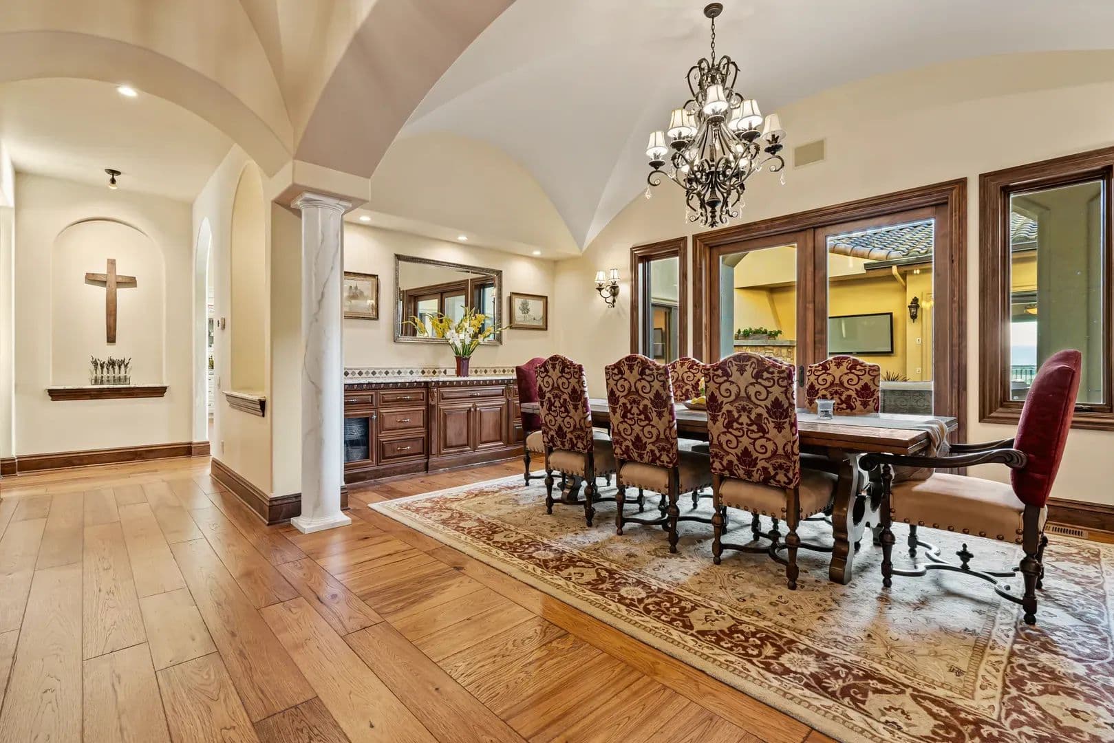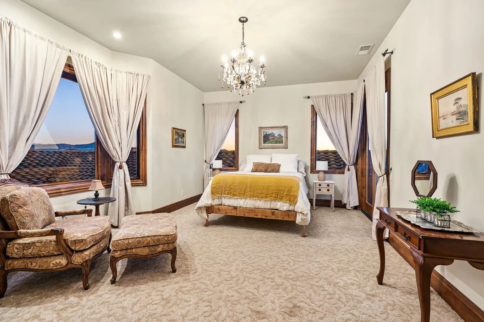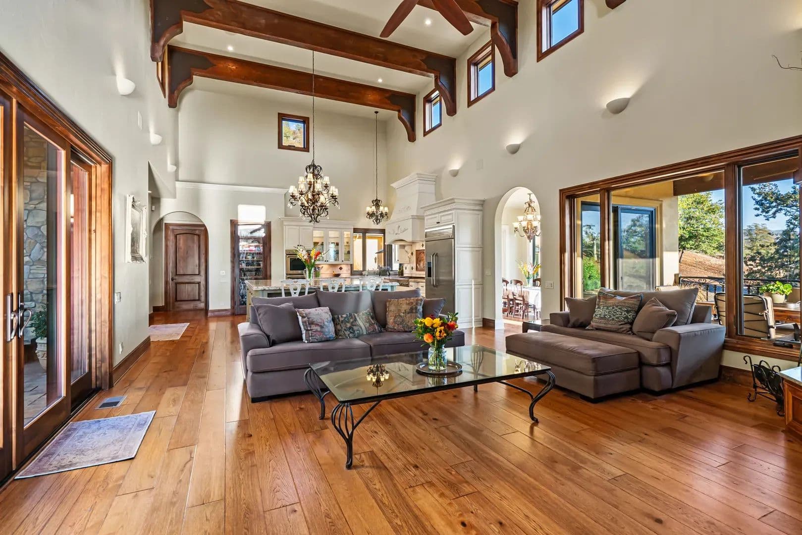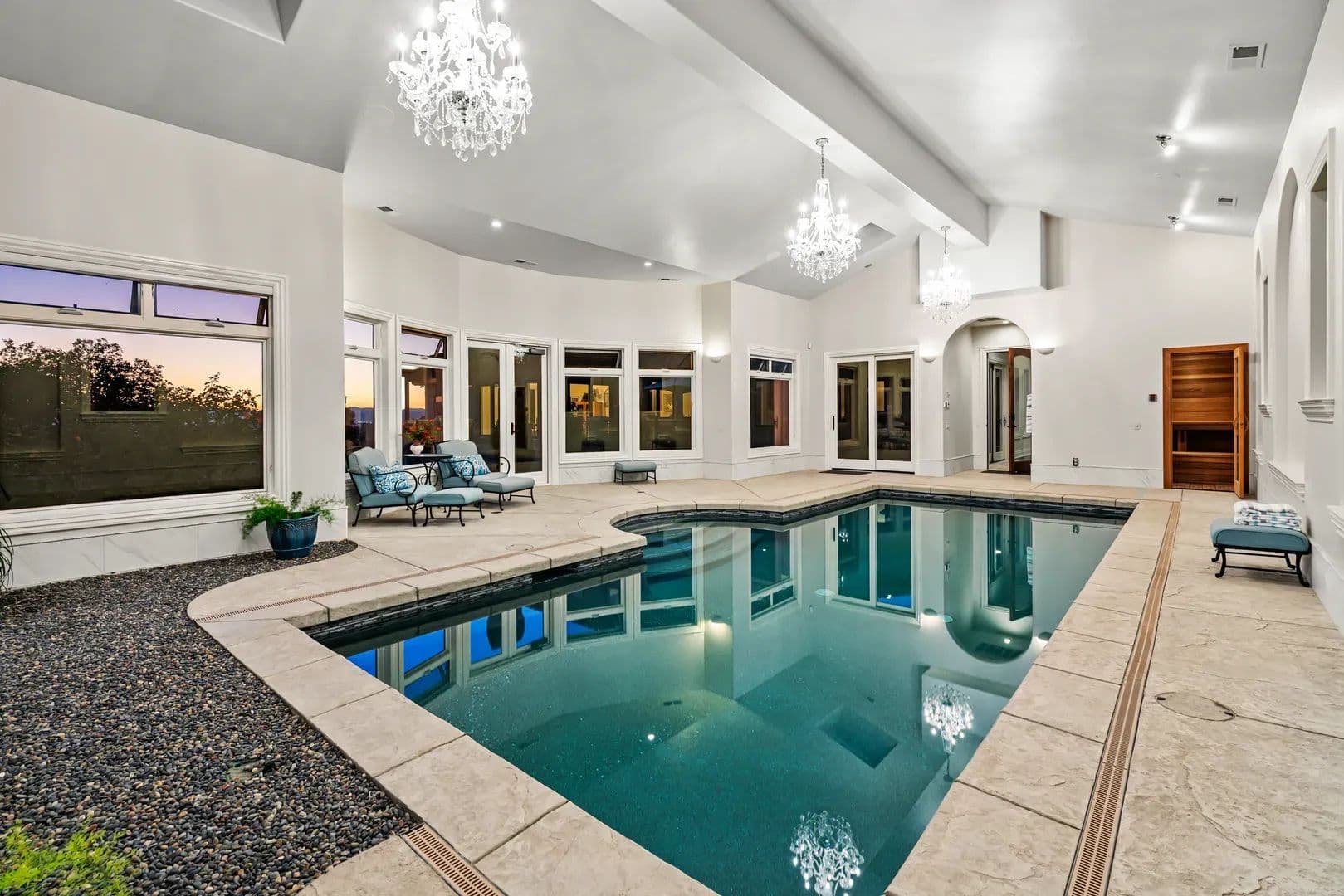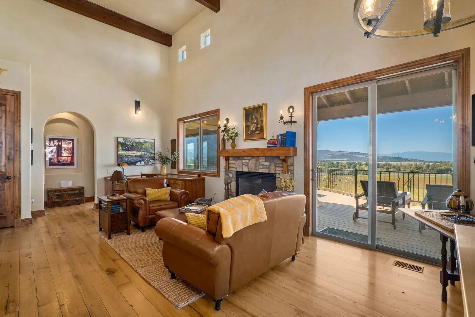 The EstateEvery element of this residence reflects an uncompromising commitment to design, craftsmanship, and livability. The home’s architectural vision—a Mediterranean villa reimagined for the Pacific Northwest—balances grandeur with practicality, creating a space that is both inspiring and inviting. At its heart lies a stunning private courtyard that connects the main wings of the home, blending indoor and outdoor living in timeless Tuscan arrival, the grand entry immediately sets the tone with marble flooring, an elegant circular staircase, a private elevator, and soaring 27-foot cathedral ceilings. Natural light fills the home, illuminating intricate woodwork and refined finishes that flow throughout the main a floor plan centered around the interior courtyard, the first space beyond the foyer is the formal dining room—an elegant setting with floor-to-ceiling windows, stately columns, and a custom fireplace with imported mantle. Across the hall, a climate-controlled 2,000-bottle wine room displays handcrafted shelving and warm wood open-concept kitchen and great room deliver both sophistication and function. Anchored by an expansive granite island, the kitchen offers professional-grade appliances, custom cabinetry, ample storage, and an inviting bar for entertaining. The adjoining great room, with its 22-foot vaulted ceilings, features a classic Rumford fireplace and windows framing mountain and courtyard views. The courtyard itself serves as an outdoor extension of the living space—complete with fireplace, large television, water feature, and multiple areas for year-round enjoyment. A bright breakfast nook and a covered patio with built-in barbecue further enhance the home’s indoor-outdoor the west, the family room offers a warm and inviting atmosphere with a custom library, wet bar, and sweeping views of the vineyard and distant mountains plus french doors lead to the vineyard deck with great views. The adjacent executive office is an elegant workspace designed for both focus and primary suite completes this wing, providing a tranquil retreat. The spacious bedroom features a sitting area, fireplace, and direct access to the vineyard deck where the valley and mountain vistas unfold. The spa-like bath includes dual custom vanities, a large walk-in tile shower, jetted soaking tub, and heated floors. A luxurious walk-in closet with built-ins connects discreetly to a secondary entrance near the foyer and main garage for , vaulted ceilings with wood beams and turret-style architecture create dramatic appeal. One wing features two guest bedrooms, a guest bath, and a private balcony, while the other includes a spacious bonus room with built-in cabinetry, vaulted ceilings, and a balcony overlooking the courtyard and mountain eastern wing of the main level includes a large utility and laundry room with mudroom, second office, and powder bath, plus direct access to the second garage. The adjoining recreation space includes a gym, full bath, infrared sauna, and an impressive indoor Pebble Tec saltwater pool—heated by solar or furnace and supported by its own HVAC system. Outside, a large south-facing patio offers yet another inviting space for entertaining or quiet features include two attached garages, a finished basement workshop, raised garden beds, and a dedicated garden room. The fully fenced garden even boasts fine wire mesh and gravel, greatly deterring loss of produce from nature’s critters. The home’s stucco and stone exterior, tile roof, geothermal heating and cooling, and whole-house Cummins backup generator combine to deliver timeless design, exceptional efficiency, and modern peace of CasitaPerched atop the vineyard is a beautiful 851-square-foot casita with one bedroom and one full bathroom. Designed with the same craftsmanship and finishes as the main residence, it features a stucco exterior that complements the estate’s Mediterranean style. Inside, the open layout includes a full kitchen, comfortable living area, and private bedroom suite. Doors open to a spacious deck overlooking the vineyard—an ideal place to relax and enjoy the views. The casita is perfect for guests, caretakers, or as a private VineyardThe property includes Celtic Moon Vineyards, a 42.5-acre vineyard in the Rogue Valley AVA near Eagle Point. Established in 2014, it sits on gently sloping, southwest-facing terrain with good sun exposure and soils. The vineyard is fully fenced and designed for efficient, mechanized operation. There are multiple varietals, including Pinot Noir, Syrah, Chardonnay, Viognier and more. Planted on 7’ x 4’ spacing with a Vertical Shoot Position (VSP) trellis system, the vineyard also uses drip irrigation. Frost protection and monitoring systems include five wind machines and two weather The property holds 77.44 acres of irrigation rights—69.70 acres (RRVID) and 7.74 acres (MID)—all delivered entirely through the RRVID system by inter-district agreement. The RRVID line is piped and serves as the main water source, providing around 40 PSI at the point of diversion. Domestic water is supplied by two private wells and a spring, with ~6,000 gallons of total storage. OutbuildingsThe estate includes a collection of functional and well-built outbuildings that support both lifestyle and land use. The Main Barn includes an enclosed shop with concrete floor and a machine shed plus a carport. Total covered area approximately 4,554 sq. ft. The Machine Shed building is ideal for additional equipment or vehicle storage. Four livestock shelters, each approximately 12’ x 24’, are suitable for small-scale livestock or equestrian property sits between 1,460 and 1,960 feet in elevation, with the home at about 1,600 feet. The land is level to gently rolling, with moderately steeper slopes above the residence offering scenic vineyard and mountain LocationNestled in the heart of Southern Oregon’s wine country, this estate offers rare privacy and convenience. Its positi
