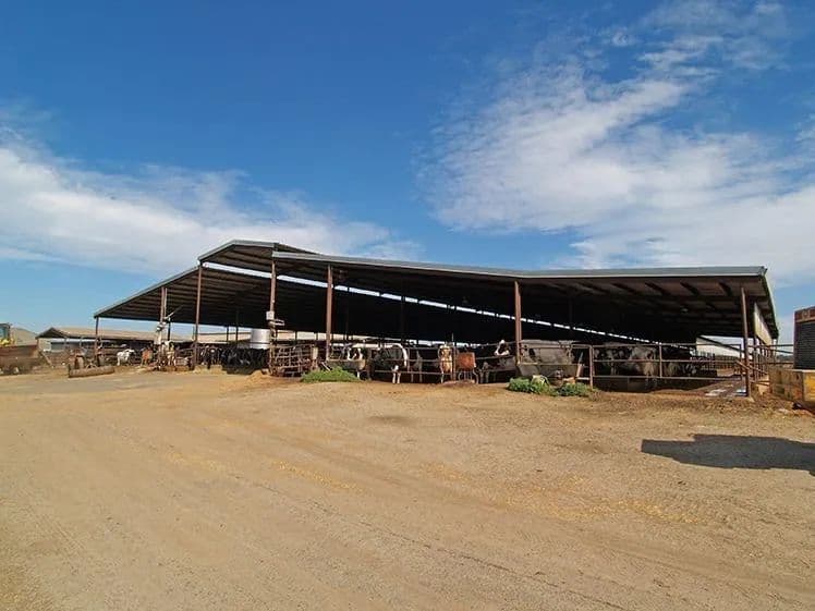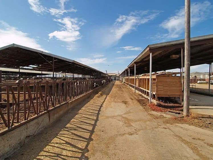 Excellent Turlock location. Turnkey 1,000 cow dairy facility. Free stall barns with flush, double 10 herringbone milking barn, 8 stall flat barn to milk hospital cows. 2 milk tanks; 5,000 gallon and 4,000 gallon. Silage slab, 4 bay commodity barn, 2 large hay barns. 3 homes and 2 mobile homes. 2 lagoons, settling pond and a separator. Complete set-up for calves and heifers. Very efficient dairy facility, near the city limits of Turlock. Permitted for 863 cows with water board and 1,000 cows with the air board.