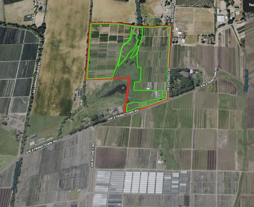 Proven, turnkey four-season cut flower nursery with a decades long record of profitability with established markets and consistent demand. Just over 46 acres featuring 34 acres of productive tillable ground planted into nursery stock and 10 additional acres leased for established peony production. TVID water rights in place. Located just outside Forest Grove city limits near Hillsboro. County suggests possible eligibility for a single-family residence. Multiple building sites offer stunning mountain views.