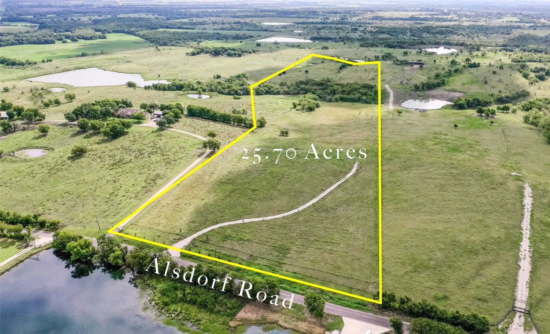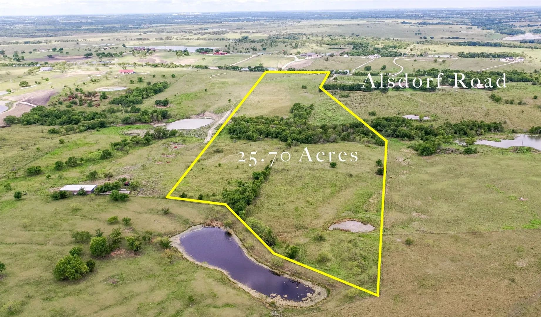 Discover this stunning 25.7-acre property, ideally situated on sought-after Alsdorf Rd and surrounded by large acre tracts and beautiful homes. This land is ideal for those looking to build their dream home or establish a recreational retreat, with ample space for livestock and agricultural pursuits. The property features an elevated peak, providing the perfect spot for a homesite with panoramic views. Pond located at the back of the property! Utilities are readily available, including a water meter installed and provided by Rice Water Supply, gas hookup availability, and electricity access at the road. Currently ag exempt, this tract offers a rare opportunity to enjoy country living outside the city limits. Approximately 10 Minute Drive to Downtown Ennis, and a 30 Minute Drive to Downtown Dallas.