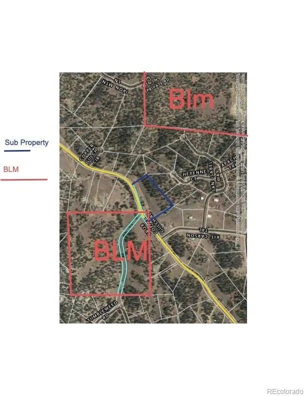 Ever crave land that doesn't come with rules-or noise? This 6.46-acre sanctuary in early Glen Vista (no HOA dues here) is your blank canvas, kissed by sunlight, shaded by pines, and gently sloping toward storybook views of the Sangre de Cristos. Just off paved Copper Gulch Road, it's easy to get to-but feels worlds away. A seasonal water draw meanders through the meadow, while the northwest corner touches BLM, giving you direct access to untamed wildland. Pick your perch: nestled in the trees or elevated near the ridge where the skies stretch wide. Power is nearby if you want it. But maybe what you really want is peace, possibility, and a sky full of stars. Whether you're dreaming of a cabin, a camper, or a quiet place to reconnect, this land holds space for all of it. Let it be your return to center-your place to breathe, build, and become.