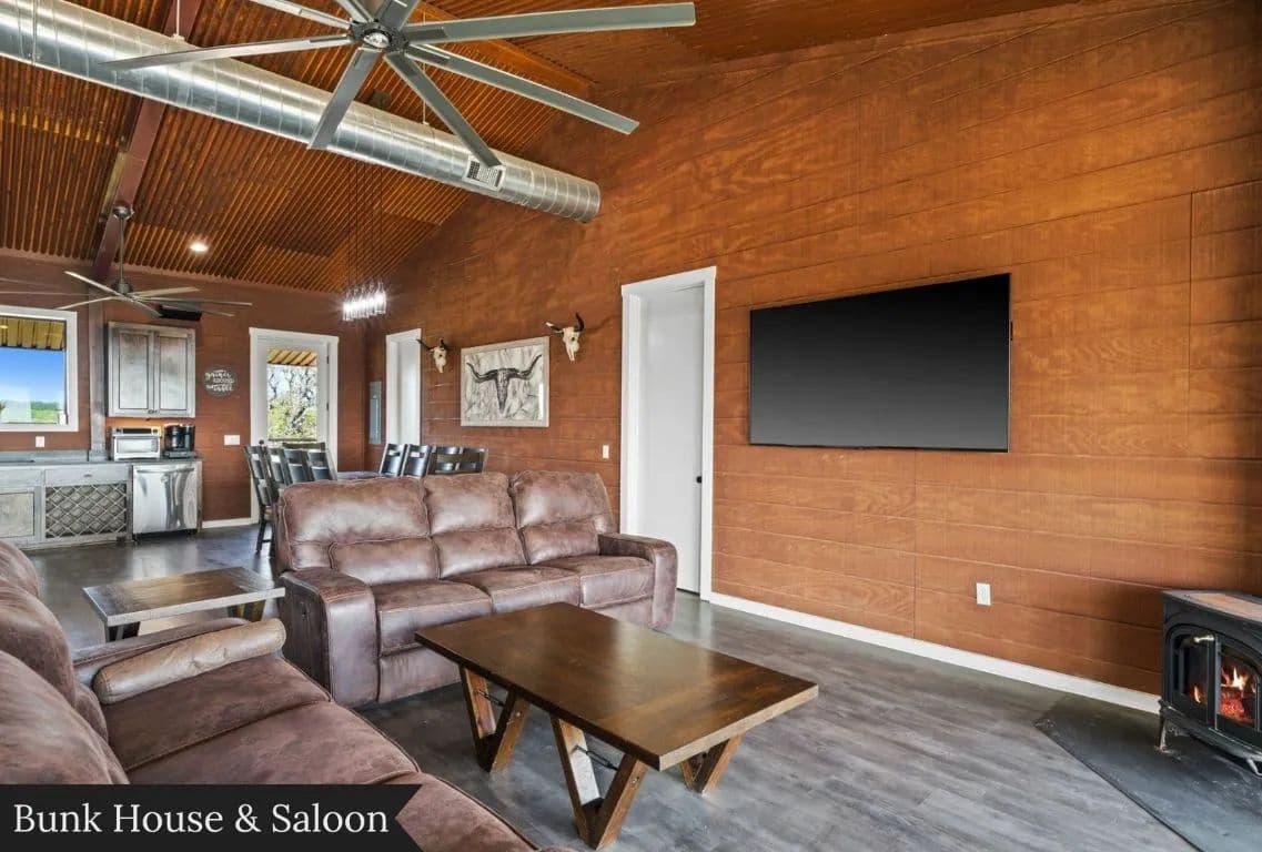 Improvements include a 3-bed, 3-bath main home with a large covered outdoor kitchen/living area offering incredible views. A spacious barndominium includes a 3-bed, 3-bath upstairs with a 10-bed bunk room, and downstairs features a full kitchen, bath, saloon, and living area—all with wraparound porches.