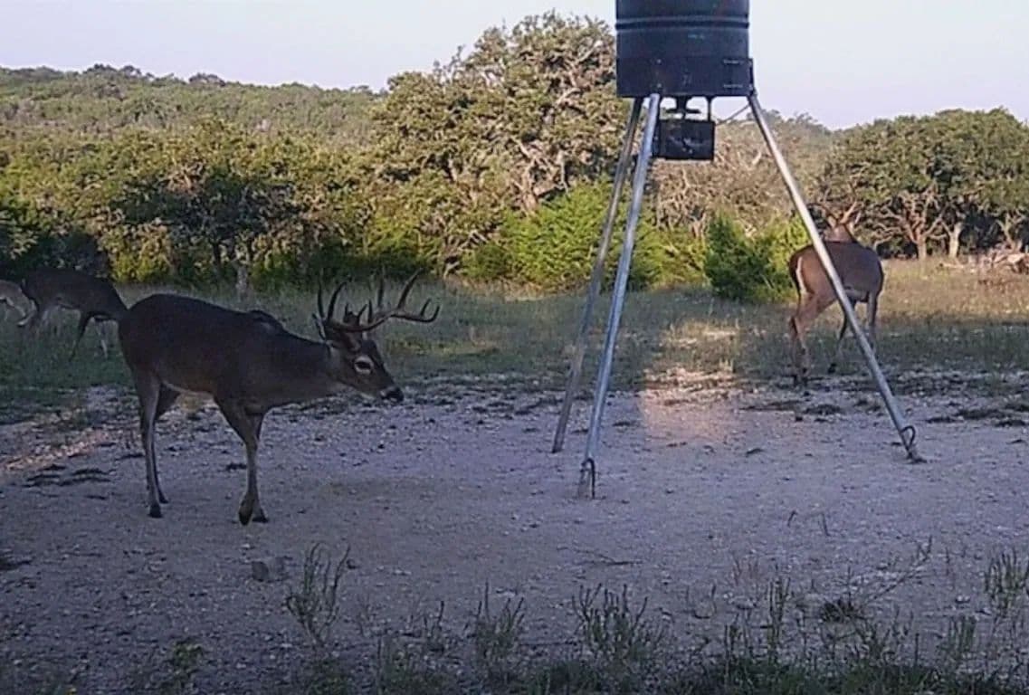 The ranch features breathtaking views, mature oak trees, rolling hills, large open pastures, and wooded areas for wildlife habitat. Wildlife includes whitetail deer, axis, turkey, dove, and hogs—making it a hunter’s paradise. Approximately half of the ranch is cleared while the other half remains natural.
