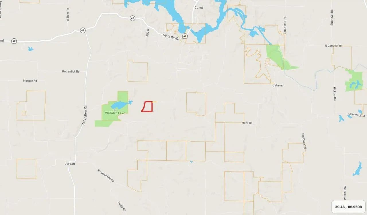 Rare opportunity to own 33.41± wooded acres in Owen County, Indiana, located near Wasatch Lake and Poland, IN. This property offers a secluded recreational setting with access provided via an easement off Wasatch Lake Road, allowing privacy while remaining conveniently located.
