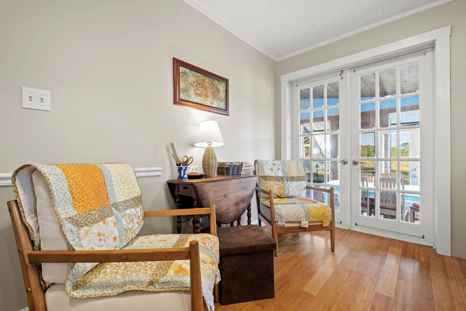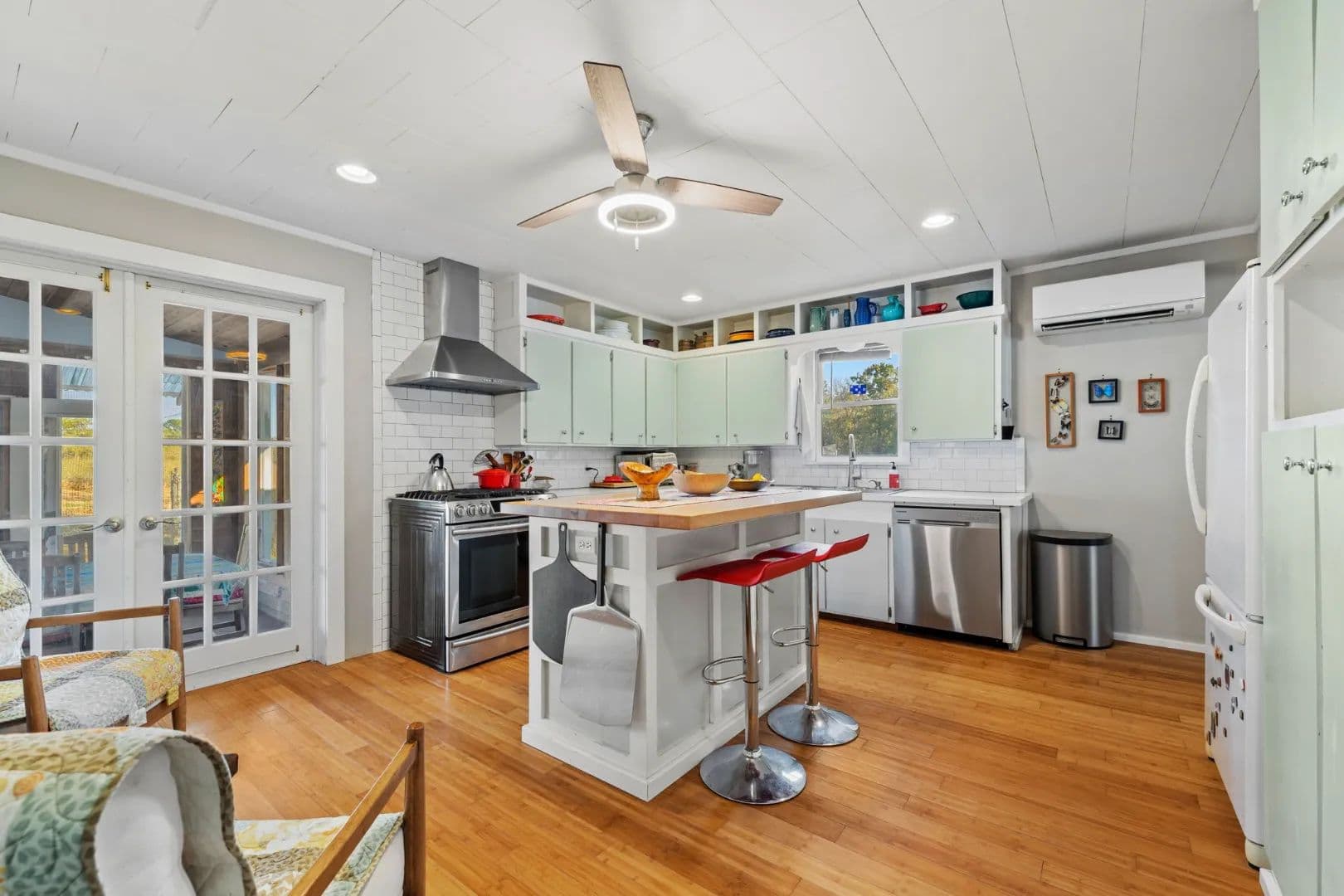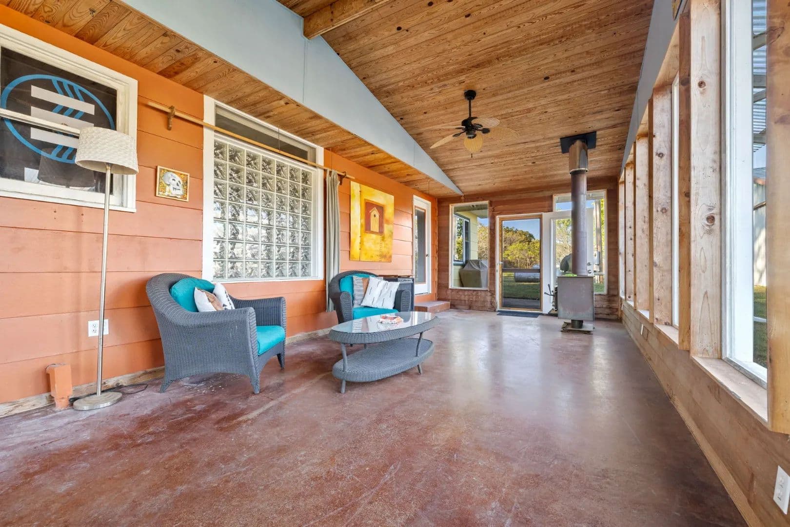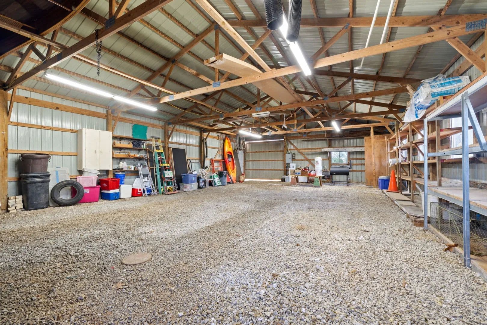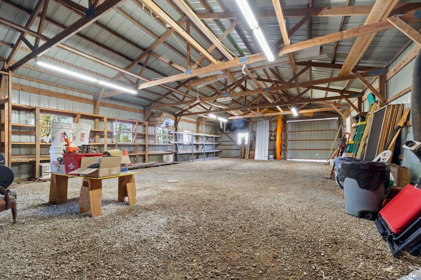 The home’s a quaint 2-bedroom, 1-bath farmhouse with about 1,456 square feet, full of that old-country charm. It’s got an attached carport to keep you dry and a screened-in patio that’s perfect for summer nights — or close it up and make yourself a cozy four-season hangout. Out back you’ll find a handful of outbuildings: an old red barn that’s seen its fair share of stories, a big ol’ shop (no concrete floor, but plenty of room for projects), and a smaller workshop for tinkering or storing your gear.