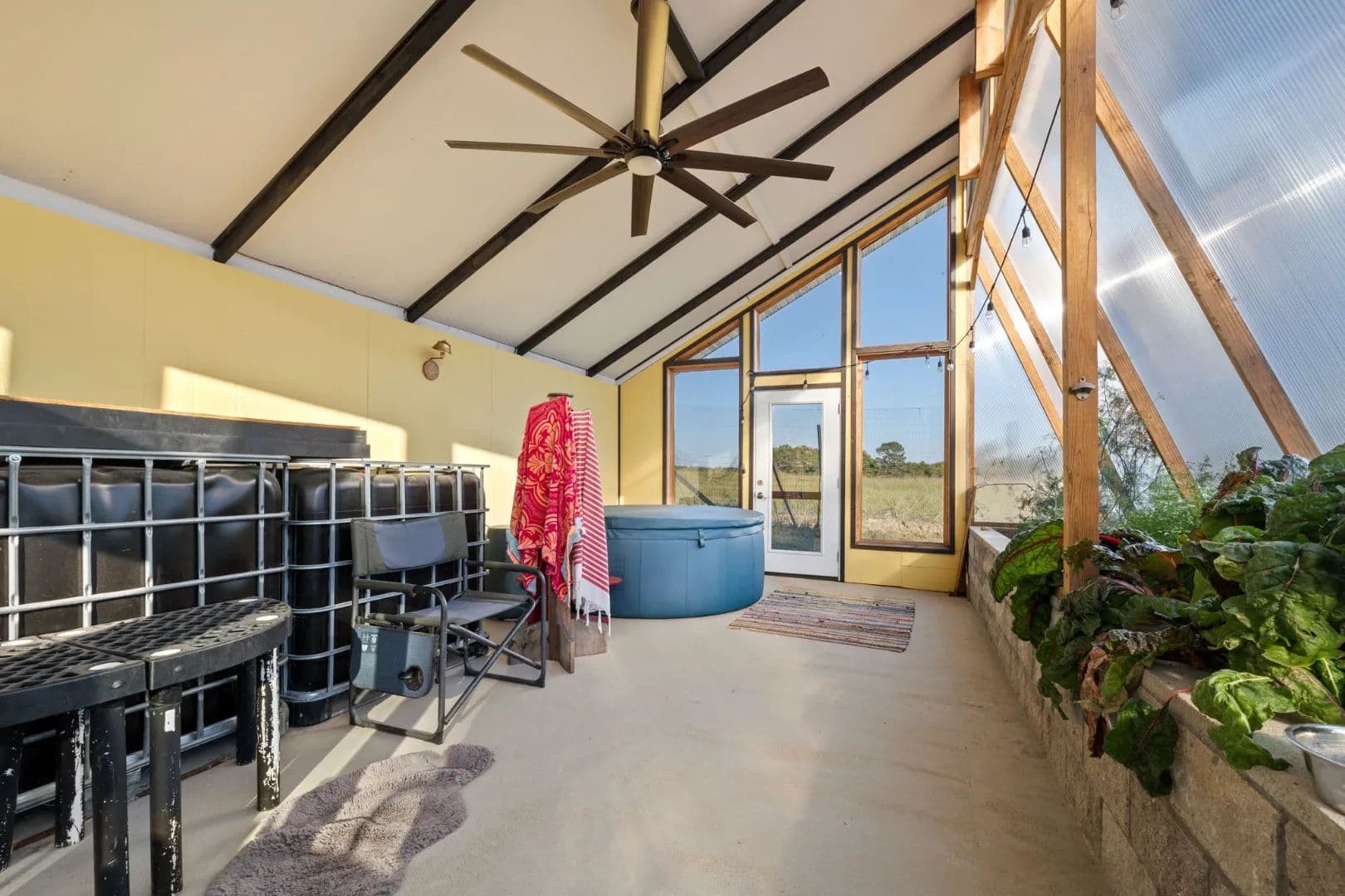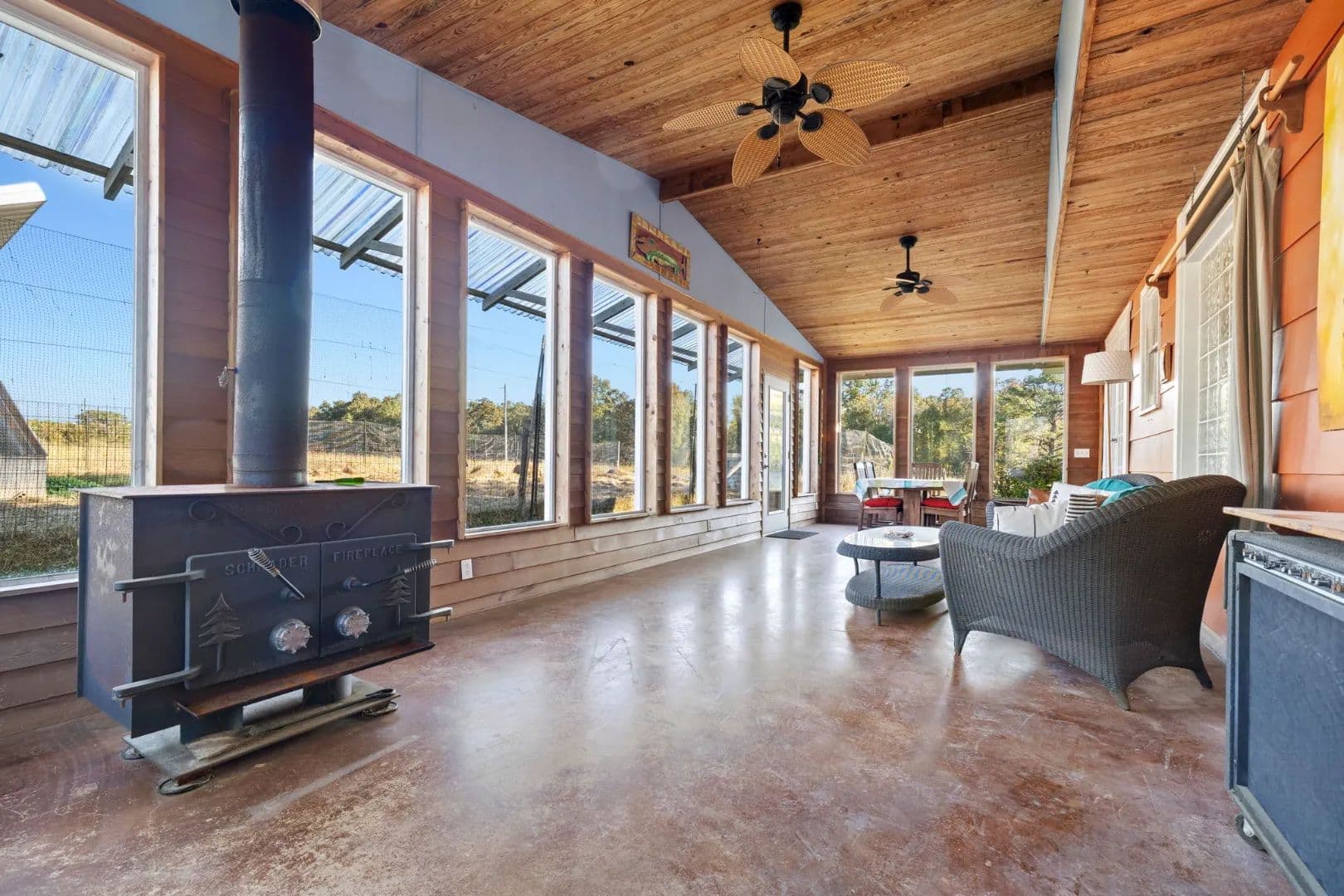 The land rolls gently, dressed in a mix of pasture and timber, with trail systems weaving through like ribbons. There’s abundant wildlife — deer, turkey, and all sorts of critters — though the current owners don’t hunt, so the place has been a quiet sanctuary for years. Two ponds sparkle under the sky, and near the house, you’ll find a greenhouse/atrium-style building and a large garden area just waiting for your green thumb.