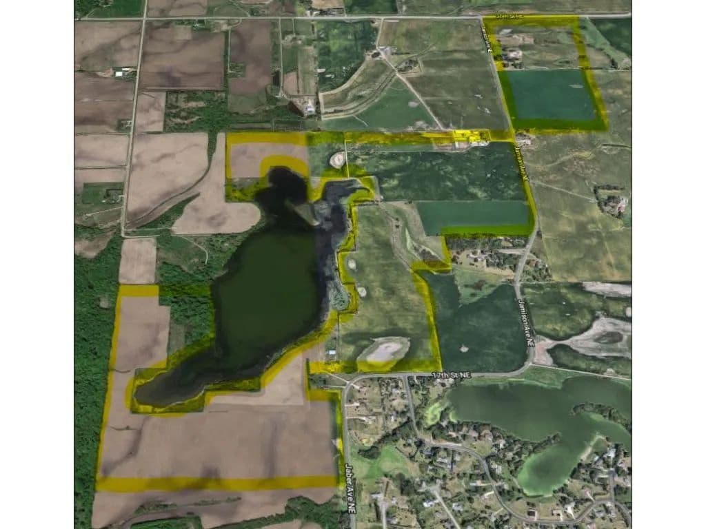 Attn developers/investors: Rare 406 acres with private lake! Rolling with ideal walkouts. Approx 2.25 miles of lakeshore. Sewer/water, 12+ acres of hardwood forest, & ponds. 3 homes & fantastic outbuildings included (potential seller buy back on two homes). Only 40 minutes to metro. Award-winning St Michael schools. Serious sellers offer reasonable take down schedule. See pics & supplements for details. Aggressive city wants development now! Contact co-lister about partial purchase.