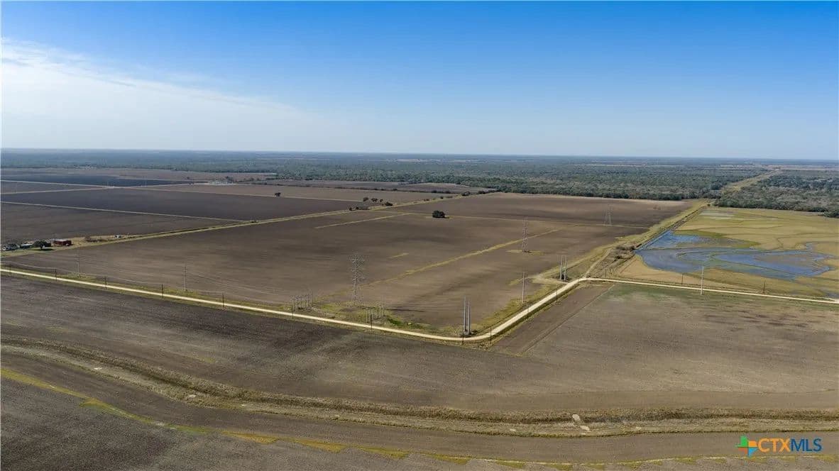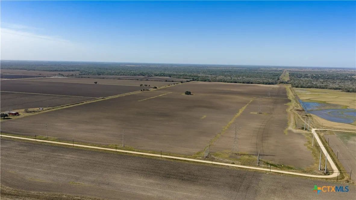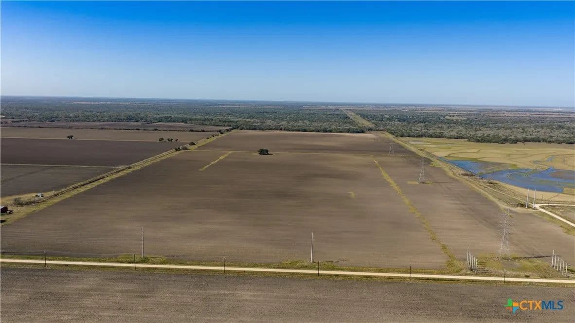 2,163.64 acres of land in Ganado, Tx currently used for row crop and pastureland. 12,125 ft of road frontage on FM 710, 8400 ft of road frontage on Thellman Rd and 7,650 feet of frontage on Galow Rd. Level terrain with 1,218 acres of irrigated farmland, 572 acres of dry farmland and 355 acres of native pastureland and brush with Sandy Creek frontage and Devers Creek Frontage. There are three irrigation water wells, 11 pipeline easements and 3 electric transmission lines. The soil consists of Dacosta sandy clay loam (47%), Nada-Cieno frequently ponded complex (25%), Laewest clay (14%), Inez fine sandy loam (7%), and other soils typically found in Jackson County. The cropland has seasonal plantings of rice, corn, wheat, and grain sorghum. Call for more information!!