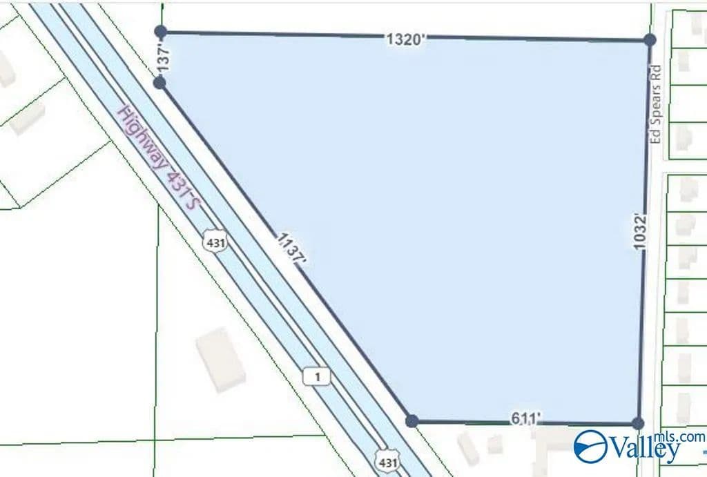 Fabulous opportunity for commercial development and single-family housing on Highway 431. See Madison County Tax Assessor PIN #513102, 0 Ed Spears Road, Owens Cross Roads, AL 35763. This parcel is zoned Highway Corridor and Single Family Residential (RS1). OCR Water Authority - water. Huntsville Utilities- power and garbage. Sewer is adjacent to this property.