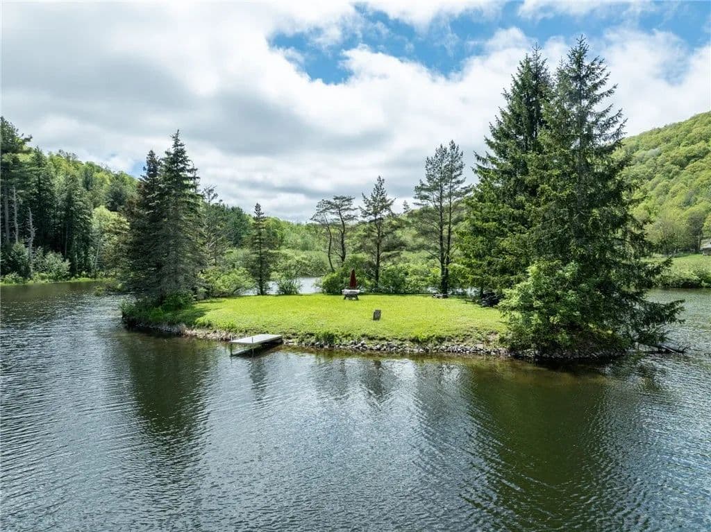 Discover your dream retreat with this stunning 8.45-acre lakefront property, featuring your very own private island in the Whiting Hollow Lake. Nestled amidst picturesque mountains, this tranquil haven offers the perfect escape from the hustle and bustle of city life, just 2.5 hours from NYC. Enjoy exclusive access to your island, complete with a dock for easy boating and fishing, as well as a convenient dock on the main parcel for seamless lake access. With buildable sites out of any flood zone, you have peace of mind and plenty of possibilities for your new home. The property includes an existing driveway for immediate use and a shed building ideal for recreational and maintenance storage. The cleared island features an outhouse, making it a perfect spot for camping, outdoor activities, or cozy campfires with friends. Surrounded by nature, this property promises a serene and private atmosphere, with the added benefits of low taxes and affordable HOA dues. Whether you’re looking to build your dream home, create a weekend retreat, or simply enjoy the great outdoors, this lakefront property offers endless opportunities. Don’t miss out on this chance to own a one-of-a-kind property!