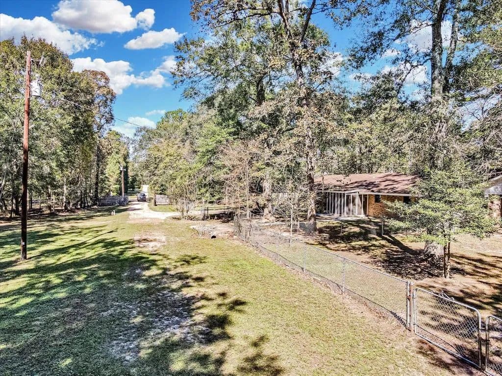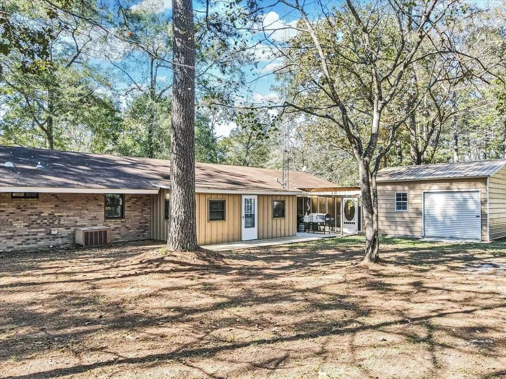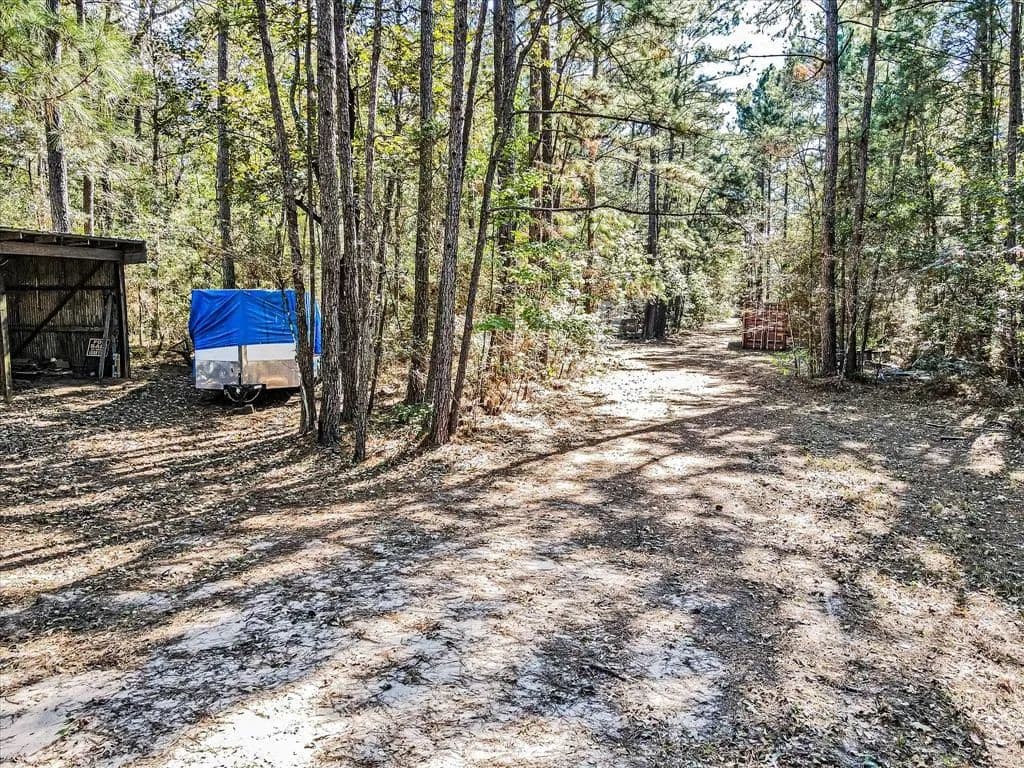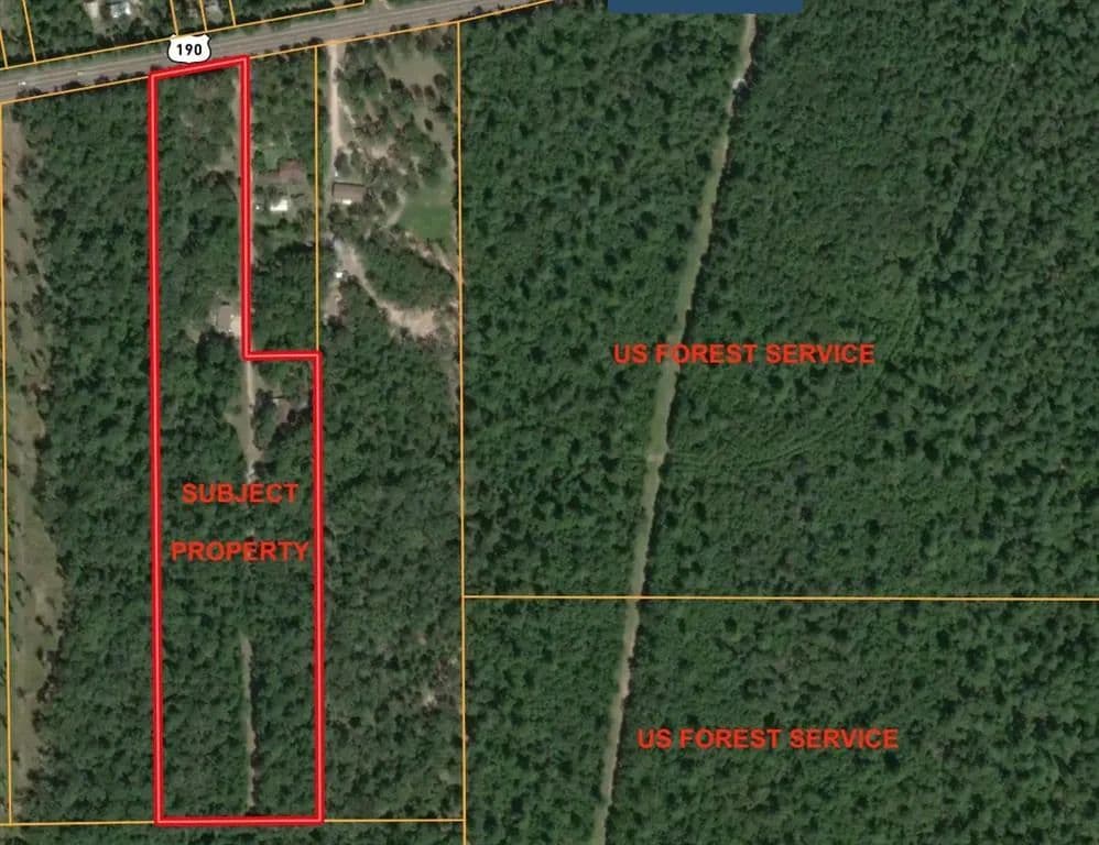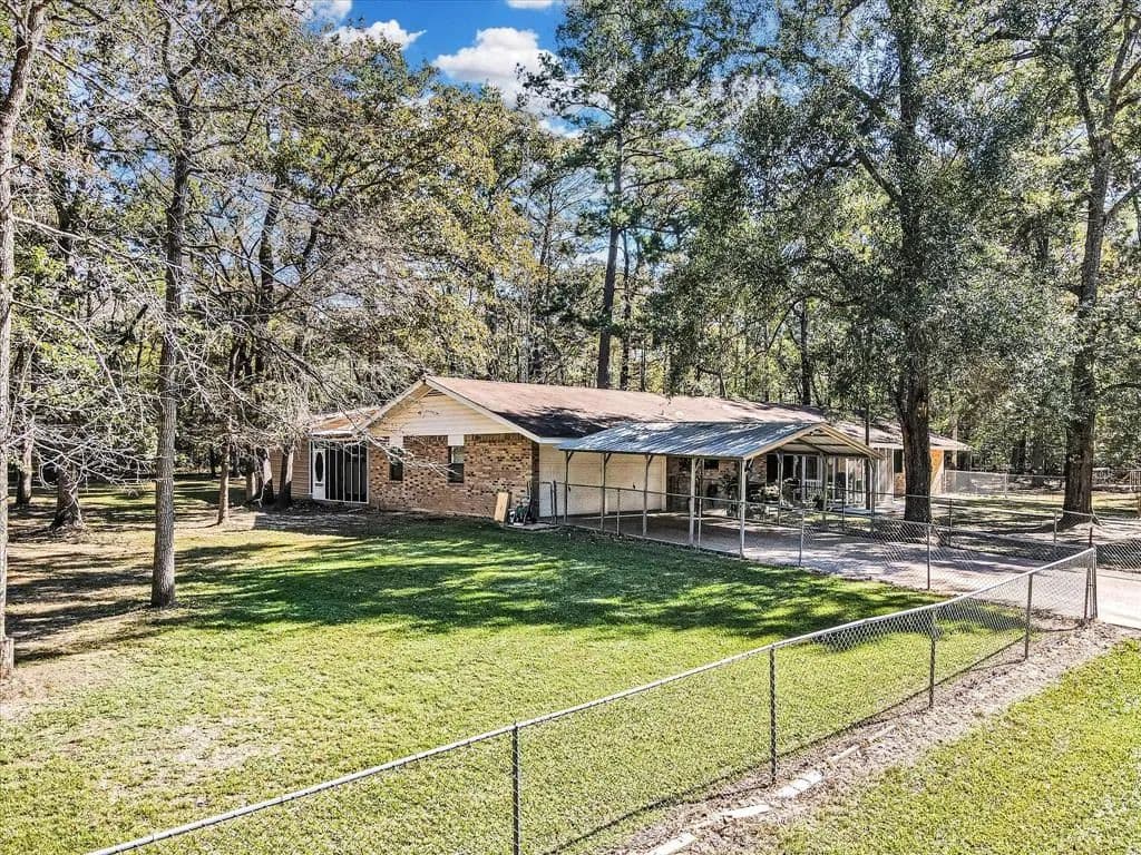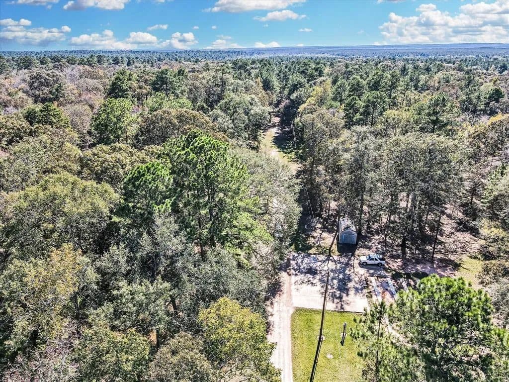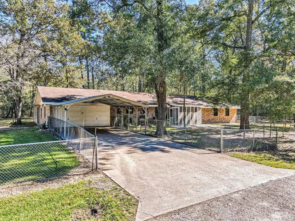 Ready to enjoy your very own piece of heaven? Nestled among the trees, this home on 11.98 acres with US 190 road frontage & shares an easement through a private drive with neighbor. Open concept spacious floor plan with ample amount of storage. The kitchen is oversized has breakfast bar with walk-in pantry/laundry room. Primary Suite is HUGE with an ensuite bath & walk-in closet. Additional screened-in porch off garage with a wonderful hot tub to enjoy relaxing & watching the abundant wildlife that surrounds this property. 20x20 shop with entry door, overhead door, electricity, plug wired for generator backup power. 3-sided barn, fenced yard, 2-car garage & 2-car carport many more features are waiting for you to call it home. Location is only 15 minutes to Huntsville, 30 mins to Lake Livingston & Trinity River. Timber exemption to help keep taxes low, provide for great wildlife habitat. Concrete pad, storage building & add't septic available. Brand new Anderson windows!