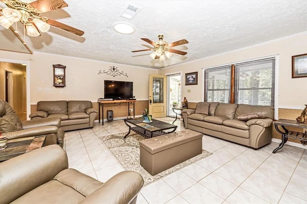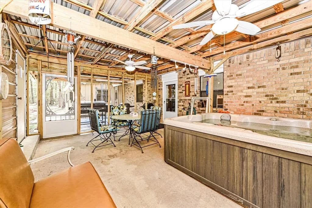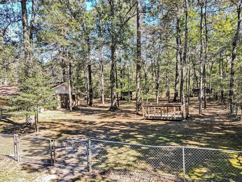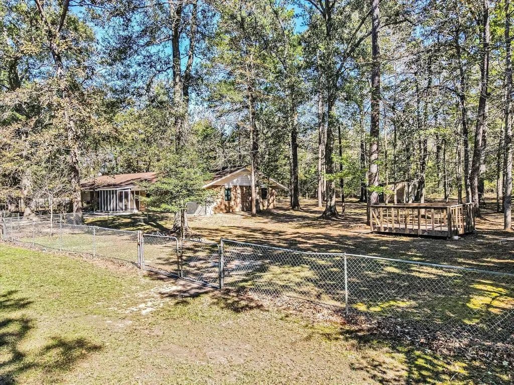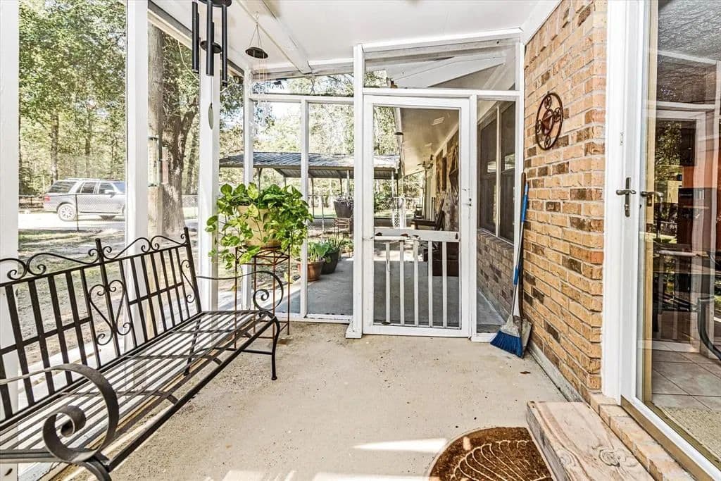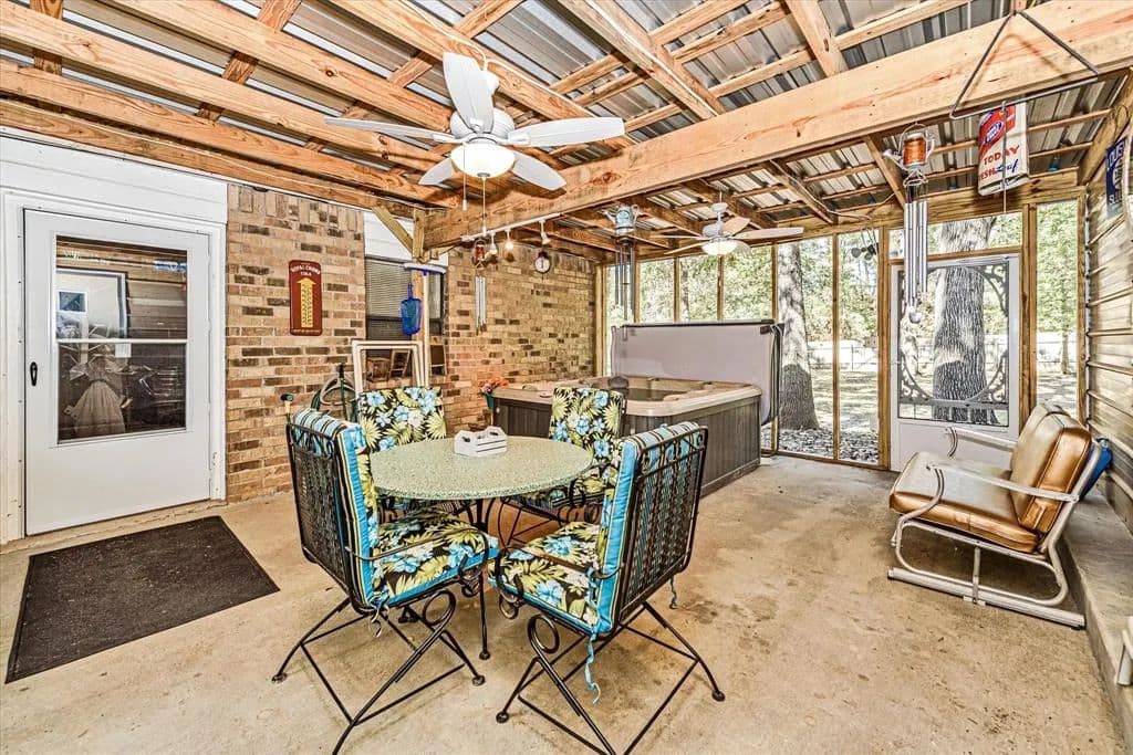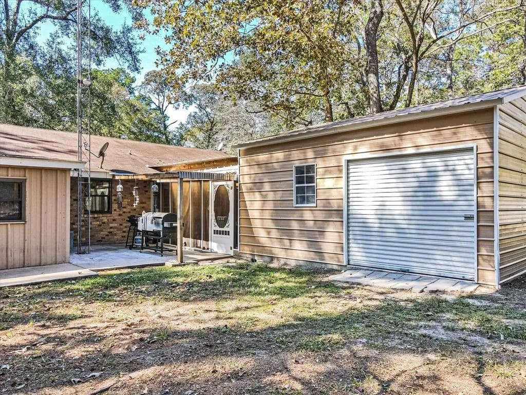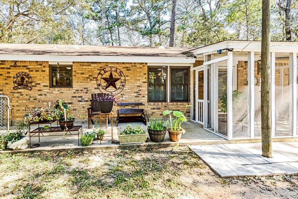 Ready to enjoy your very own piece of heaven? Nestled among the trees, this home on 11.98 acres with US 190 road frontage & shares an easement through a private drive with neighbor. Open concept spacious floor plan with ample amount of storage. The kitchen is oversized has breakfast bar with walk-in pantry/laundry room. Primary Suite is HUGE with an ensuite bath & walk-in closet. Additional screened-in porch off garage with a wonderful hot tub to enjoy relaxing & watching the abundant wildlife that surrounds this property. 20x20 shop with entry door, overhead door, electricity, plug wired for generator backup power. 3-sided barn, fenced yard, 2-car garage & 2-car carport many more features are waiting for you to call it home. Location is only 15 minutes to Huntsville, 30 mins to Lake Livingston & Trinity River. Timber exemption to help keep taxes low, provide for great wildlife habitat. Concrete pad, storage building & add't septic available. Brand new Anderson windows!